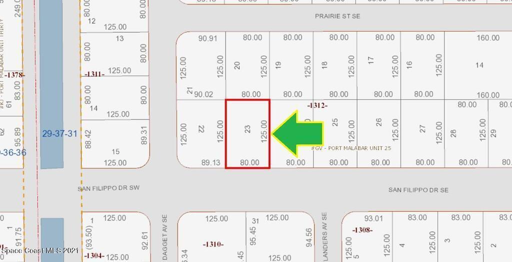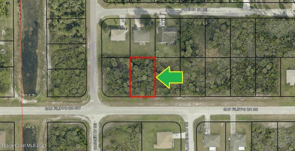 One of 2 side-by-side adjacent lots available in Port Malabar Unit 25 of Palm Bay (the other is 3160 San Filippo). Located in the southeast section, this 0.23 acre buildable residential lot is just 2 miles - 4 minutes to Westside Elementary School, 3.9 miles - 8 minutes to the Publix Supermarket, 14.6 miles - 31 minutes to Melbourne Airport, and 19.3 miles - 32 minutes to the beaches of Indialantic. From exit #173 of I-95 go west on Malabar Road NE for .2 miles, and left on San Filippo Drive SE for 7.2 miles. The lot will be on your right. Buy one lot or both!