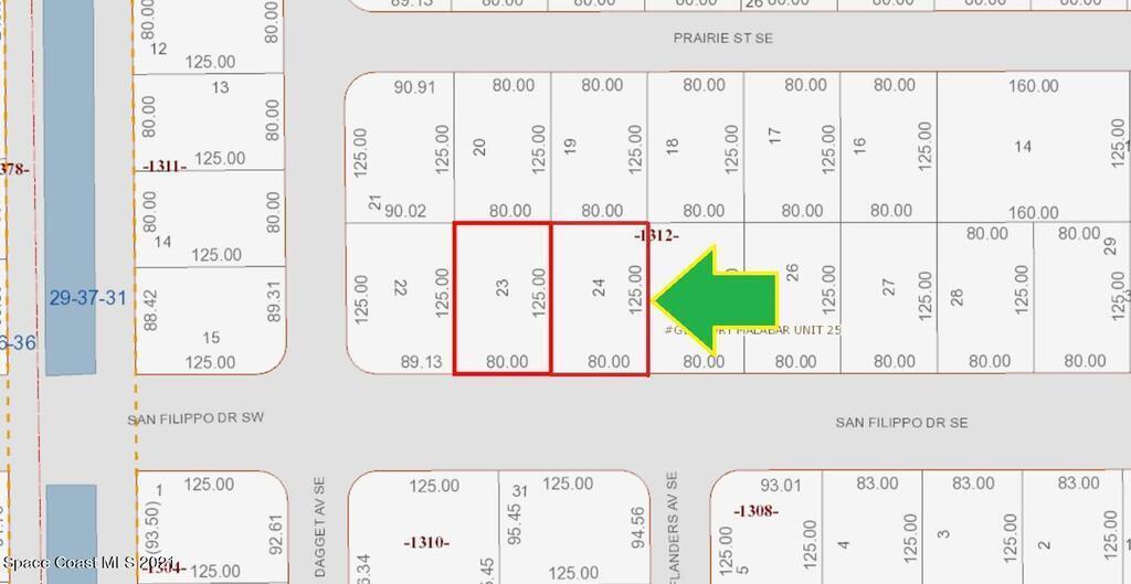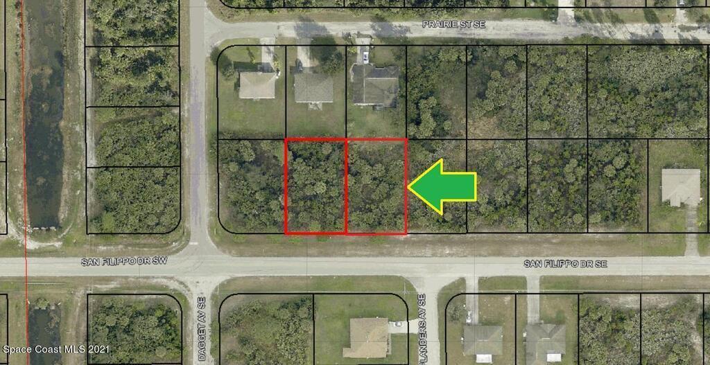 0.46 acres -- 2 side-by-side adjacent lots available in Port Malabar Unit 25 of Palm Bay. Located in the southeast section, this buildable residential lot is just 2 miles - 4 minutes to Westside Elementary School, 3.9 miles - 8 minutes to the Publix Supermarket, 14.6 miles - 31 minutes to Melbourne Airport, and 19.3 miles - 32 minutes to the beaches of Indialantic. From exit #173 of I-95 go west on Malabar Road NE for .2 miles, and left on San Filippo Drive SE for 7.2 miles. The lot will be on your right.