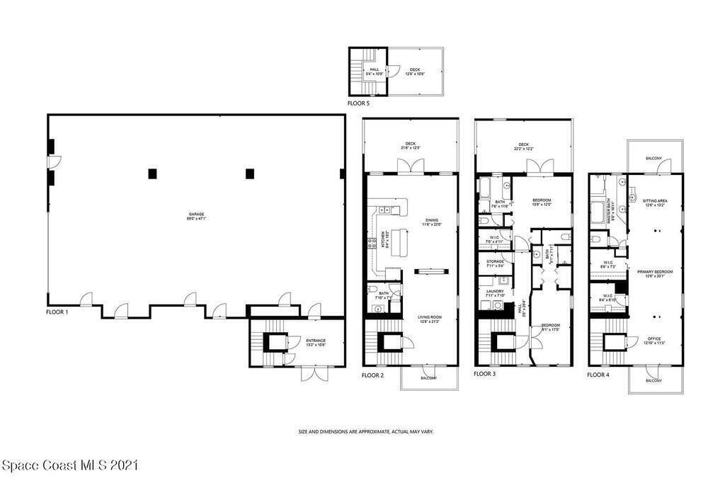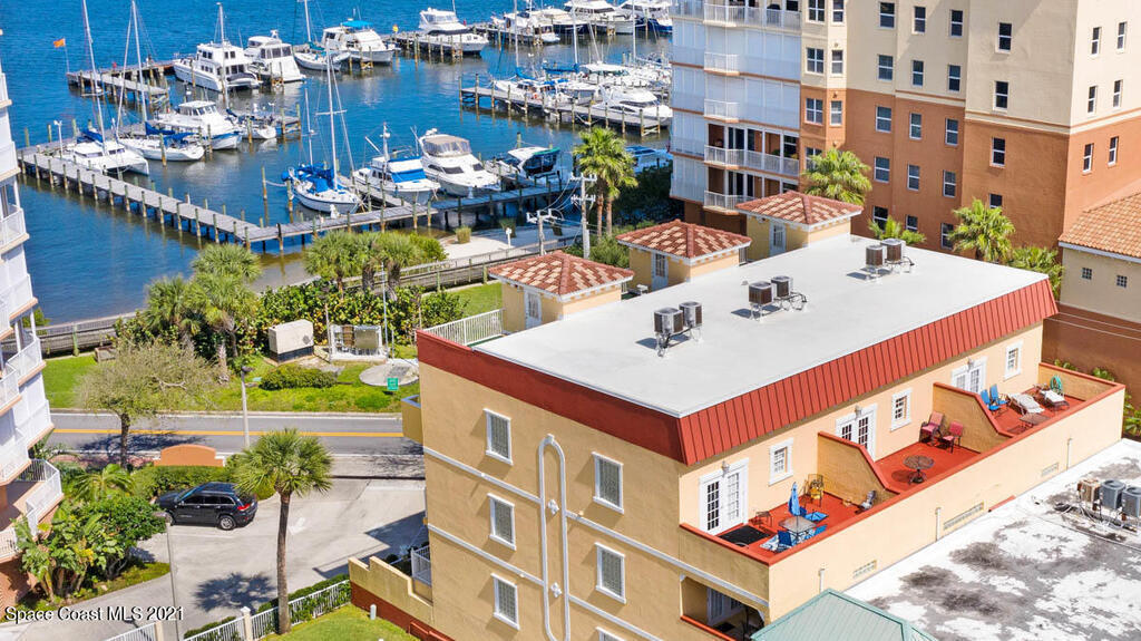 3-unit, 5 level luxurious European-style town-homes boast dramatic views overlooking the Indian River. Feel the Parisian Maison-influenced design with its terraces, balconies, private elevators, and marble floors throughout. There are also individual, private rooftop sky decks to soak up some rays or view rocket launches. The units each contain whole house vacuum, central fire system, security system, and stainless-steel appliances. There is also a private garage (6 spaces), hurricane impact windows, and steel reinforced concrete panels. This property comes fully furnished and is absolutely turn-key. Stroll beautiful Historic Cocoa Village, only steps away, and enjoy romantic walks, 60 plus shops, casual and formal dining, as well as Cocoa Village Playhouse Theater.