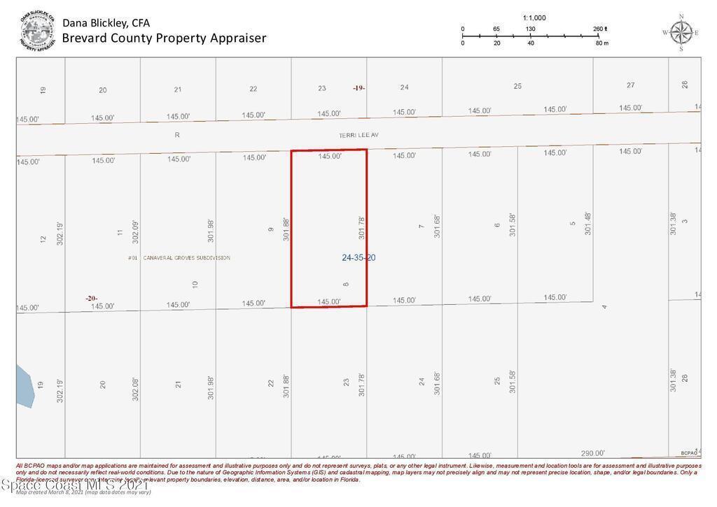 Fine one acre lot. Looks to be high and dry. No obvious wetlands. Building permits currently can NOT be obtained due to County Building moratorium in this area. Perfect site for recreational uses. There is Power on Terri Lee Ave. No HOA rules