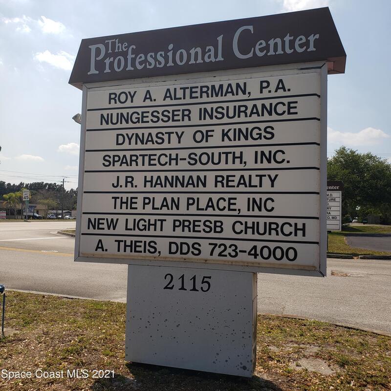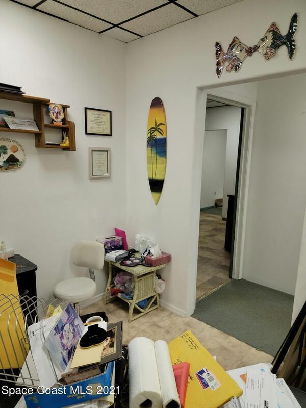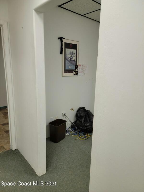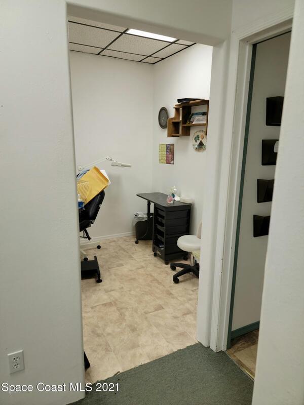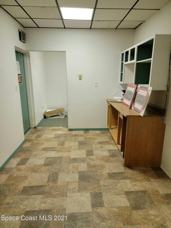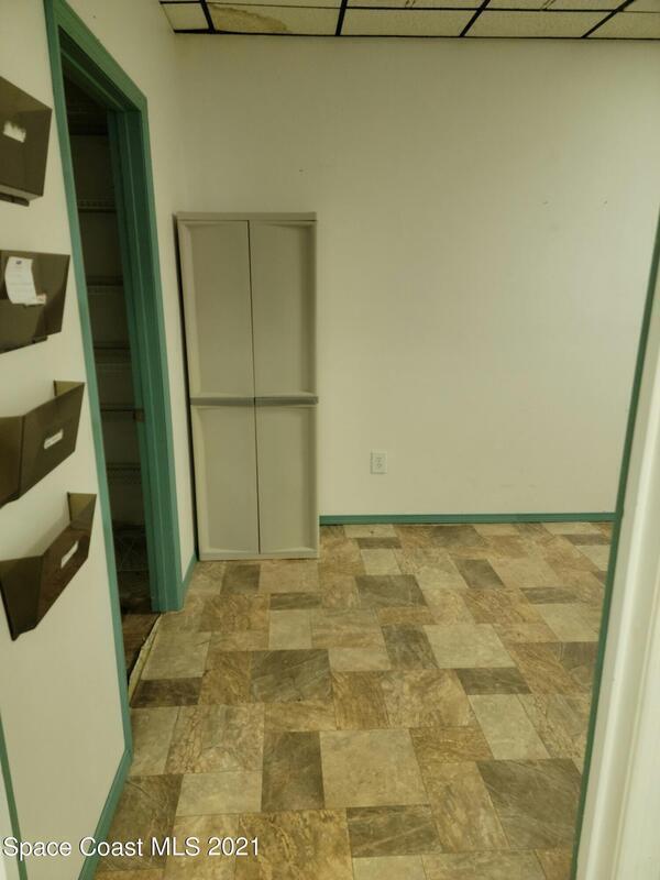 The Professional Center is centrally located off the busy Palm Bay Rd. close to I-95 and US-1. This 1,100 sqft condominium is a 5 room professional office with a waiting area, break room area and a bathroom. There is plenty of storage space through out the office. There is plenty of parking and highly visible from the road. This condominium office would be great for a start up or already existing business. The set up and location would make for a great brokerage office!!