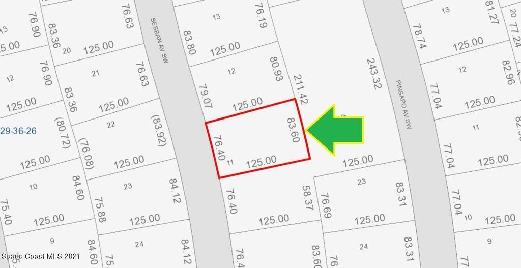 0.23 acre vacant lot available in Port Malabar Unit #52 of Palm Bay. There are no utilities present at this lot or in this area; so the lot and the unit are not build-able at the present time. The seller has no knowledge of the property and makes no representations except for title. This property is for investment purposes only in the future of Palm Bay. From exit #176 of I-95 go west on Palm Bay Road NE. Turn left on Minton Road and proceed south for 3.3 miles. Turn right on Jupiter Boulevard SW and left on DeGroodt Road SW for 2.5 miles. Turn right on J.A.Bombardier Boulevard for 1.4 miles, left on Sapodilla Road for .9 miles, left on Picasso Street for .1 mile, and right on Sesban Avenue. The lot will be on your left.