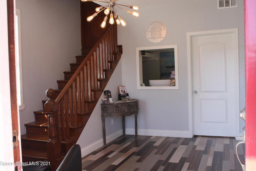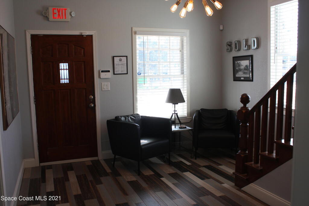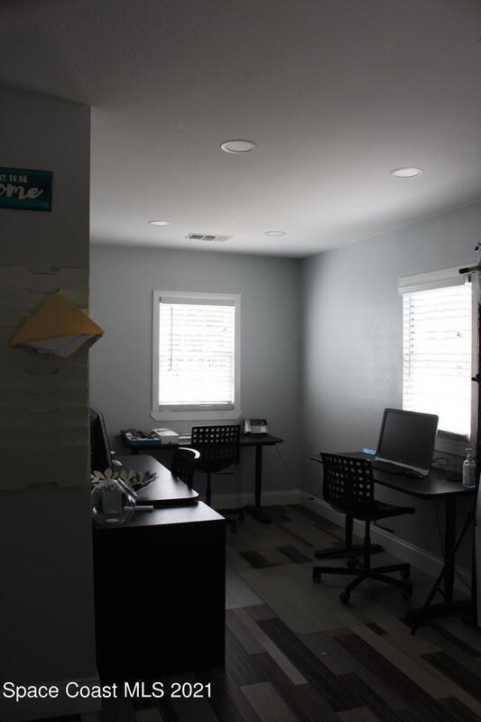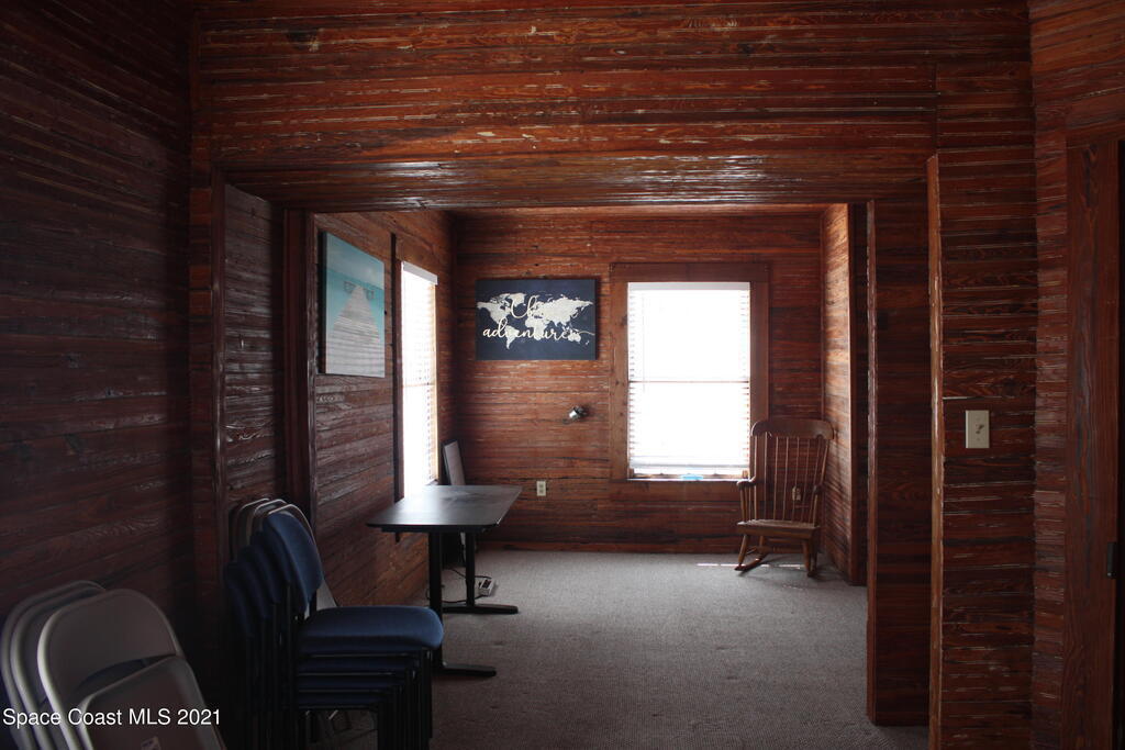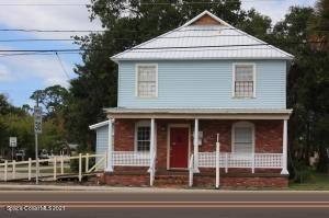 Business relocating. Live/work opportunity, high visibility location directly on Garden Street. Metal roof and siding replaced 2018. HVAC and ductwork added to upstairs in 2018. Built in 1912, moved to current location in 1958. Original features throughout second floor space including Merritt Island Heart Pine walls, solid doors, clawfoot tub. Downstairs reception area, conference room, six offices, and kitchen area.
