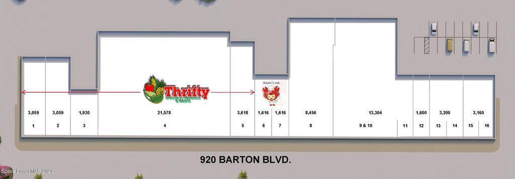 Retail, Office, Restaurant/Bar - See RMU Zoning in the City of Rockledge. New Anchor Thrifty Specialty Produce and Meats--NOW OPEN! - plus Autumn's Crab, Pizza Vola, Ice Cream Hut, Hospice Thrift Store, Wash Rite Laundry and a Brand New Barber Shop--and coming soon: Mei's Massage Therapy, and Tango and Ties Ball-room Dance Club. 1600 SF up to 20,160 contiguous SF. Store-front Windows, Covered Front Entry, Rear Entries, Some Rear Parking. All Rent and CAM subject to applicable Florida Sales Tax.