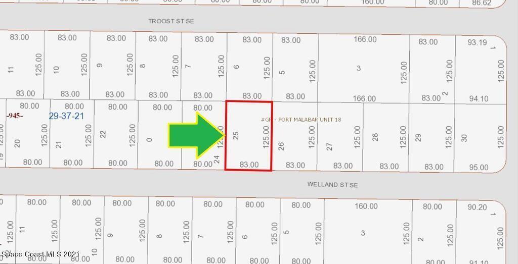 0.24 acre buildable residential lot available in Port Malabar Unit 18 of Palm Bay. Located in the southeast section, this lot is just 3 miles - 8 minutes to the Publix Supermarket, 4.6 miles - 10 minutes to Bayside High School, 11 miles - 24 minutes to Melbourne Airport, and 12.9 miles - 28 minutes to the beaches of Indialantic. From exit #173 of I-95 go east on Malabar Road for .6 miles, right on Babcock Street for 3.6 miles, and right on Welland Street. The lot will be on your right.