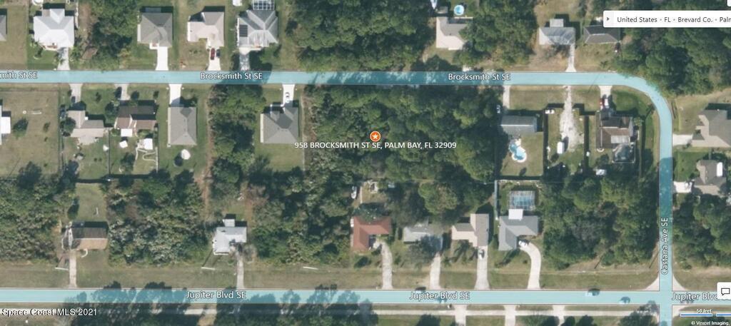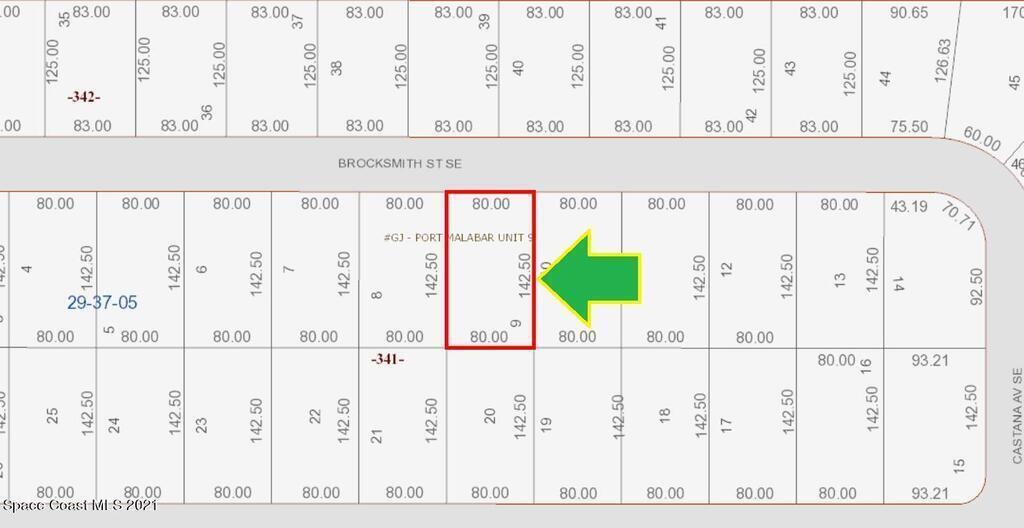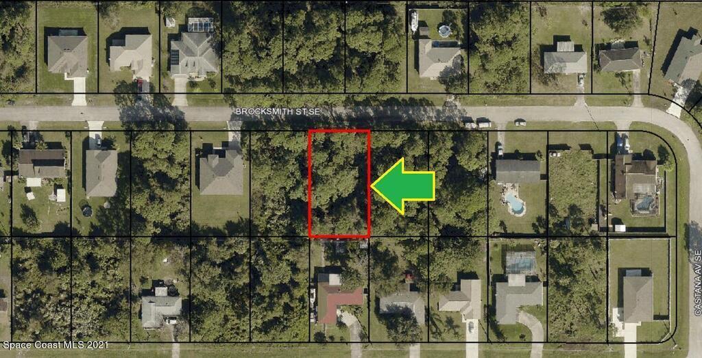 0.26 acre buildable residential lot available in Port Malabar Unit 9 of Palm Bay. Located in the southeast section, this lot has City Water and Sewer available, and is just 1.1 mile - 3 minutes to Turner Elementary School, 1.4 miles - 4 minutes to the Walmart Supercenter, 9.3 miles -22 minutes to Melbourne Airport, and 11.2 miles - 26 minutes to the beaches of Indialantic. From exit #173 of I-95 go west on Malabar Road for .2 miles, left on San Filippo Drive SE for.5 miles, right on Jupiter Boulevard for .6 miles, right on Castana Avenue which turns left and becomes Brocksmith Street. The lot will be on your left.
