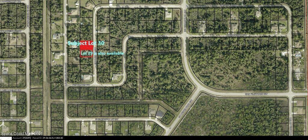 Nice buildable Double lot in SW Palm Bay with the road being repaved. Lot 29 is also available on MLS and must purchase together. I have single lot close by Owner financing terms is available on this lot or any one of our 3000 lots in Inventory Full price offer only. Price may change without notice Please call to confirm. close to Bayside lakes shopping school,