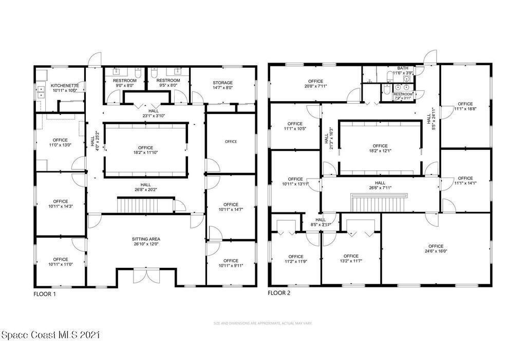 Excellent opportunity to locate your business in the heart of Melbourne in a 4,948 sf, 2-story professional office building on 1 acre. This property encompasses over 10k sf of parking and asphalt driveway space, a 3 space carport, dual road access, and separate 1st and 2nd floor entrances. This excellent floorplan includes a lobby, reception area, 12 private offices, an executive suite, 2 conference rooms, kitchen, 4 bathrooms, and ample storage. Included in the sale is the adjacent .5 acre commercial zoned vacant parcel (Tax ID 2728802; 204 W Avenue B).