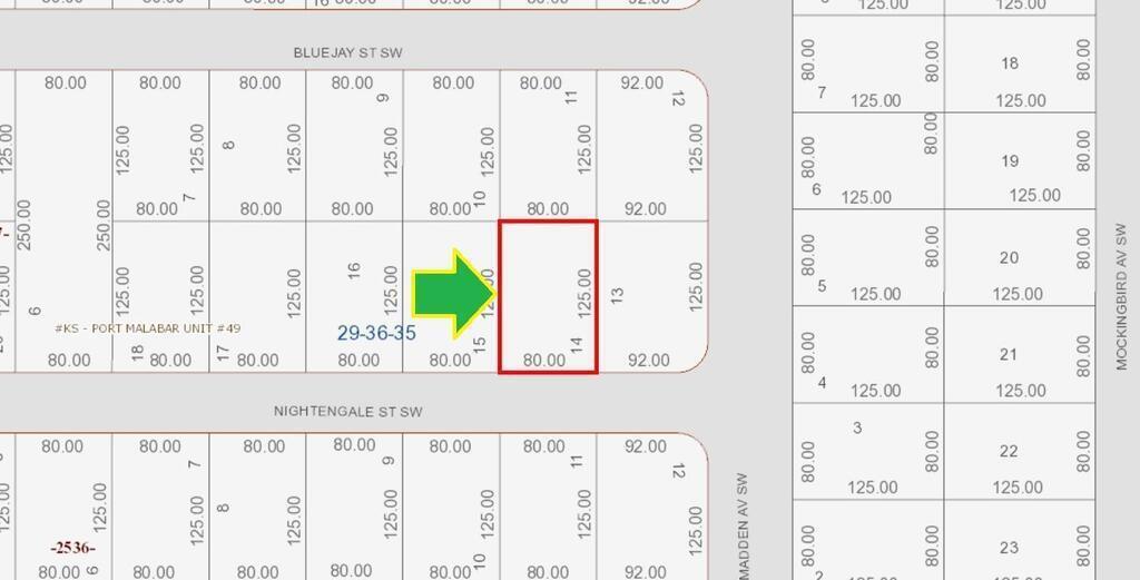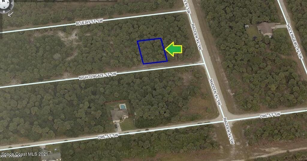0.23 acre buildable residential lot available in Port Malabar Unit 49 of Palm Bay. Located in the southwest section, this lot is just 3.4 miles - 7 minutes to Westside Elementary School, 5.3 miles - 11 minutes to the Publix Supermarket, 16.5 miles - 33 minutes to Melbourne Airport, and 21.2 miles - 35 minutes to the beaches of Indialantic. From exit #176 of I-95 go west on Palm Bay Road NE for .7 miles, left on Minton Road for 3.3 miles, right on Jupiter Boulevard for .1 mile, left on DeGroodt Road SW for 4.6 miles, right on St. Andre Boulevard for 1.2 miles, left on Madden Avenue for .4 miles, and right on Nightengale Street. The lot will be on your right.