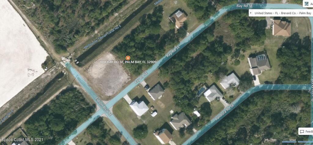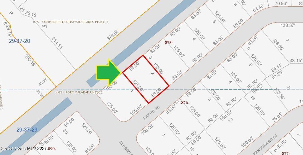 0.24 acre buildable residential lot available in Port Malabar Unit 22 of Palm Bay. Located in the southeast section, this lot has a drainage canal in the rear allowing more privacy, and is just 2.8 miles - 8 minutes to the Publix Supermarket, 3.5 miles - 7 minutes to Columbia Elementary School, 12,8 miles - 30 minutes to Melbourne Airport, and 17.5 miles - 32 minutes to the beaches of Indialantic. From exit #173 of I-95 go west on Malabar Road NE for .2 miles, left on San Filippo Drive SE for 4.8 miles, right on Eldron Boulevard SE for .6 miles, and right on Ray Road. The lot will be on your left.