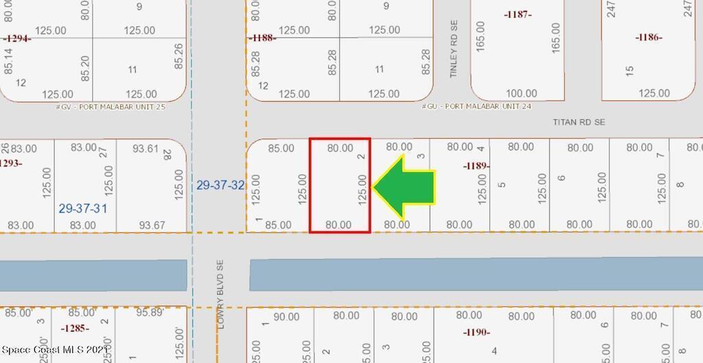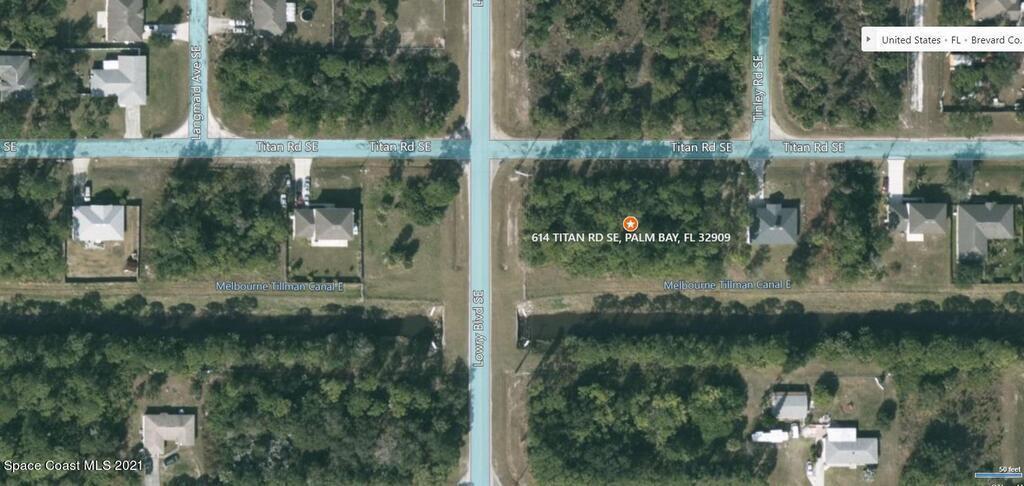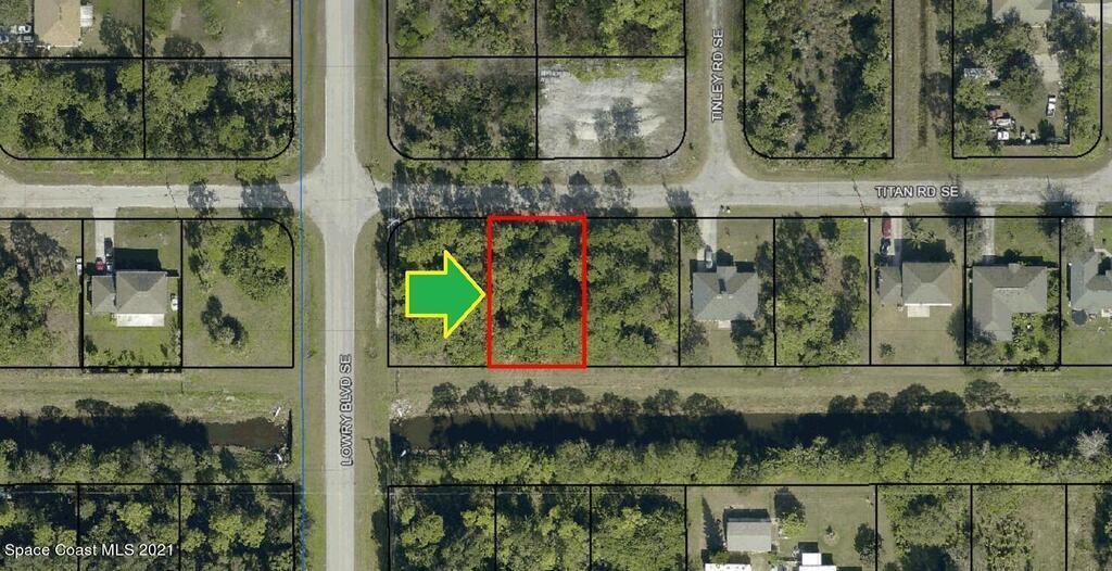 0.23 acre buildable residential lot available in Port Malabar Unit 24 of Palm Bay. Located in the southeast section, this lot has a drainage canal in the rear allowing more privacy, and is just 3.3 miles - 6 minutes to Westside Elementary School, 3.6 miles - 8 minutes to the Publix Supermarket, 14 miles - 29 minutes to Melbourne Airport, and 15.9 miles, 33 minutes to the beaches of Indialantic. From exit #173 of I-95 go west on Malabar Road for .2 miles, left on San Filippo Drive SE for 6.3 miles, left on Lowry Boulevard SE for .3 miles, and left on Titan Road. The lot will be on your right.