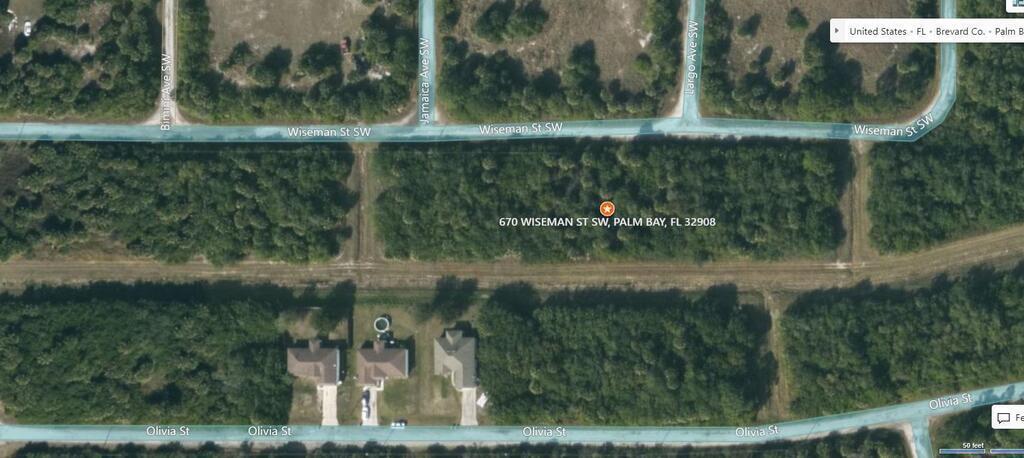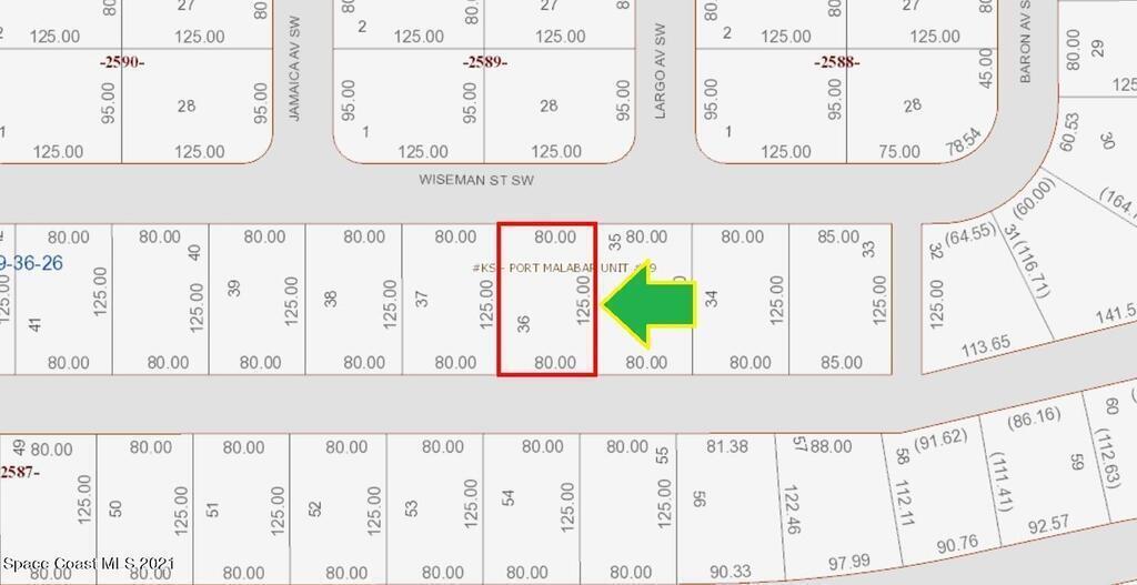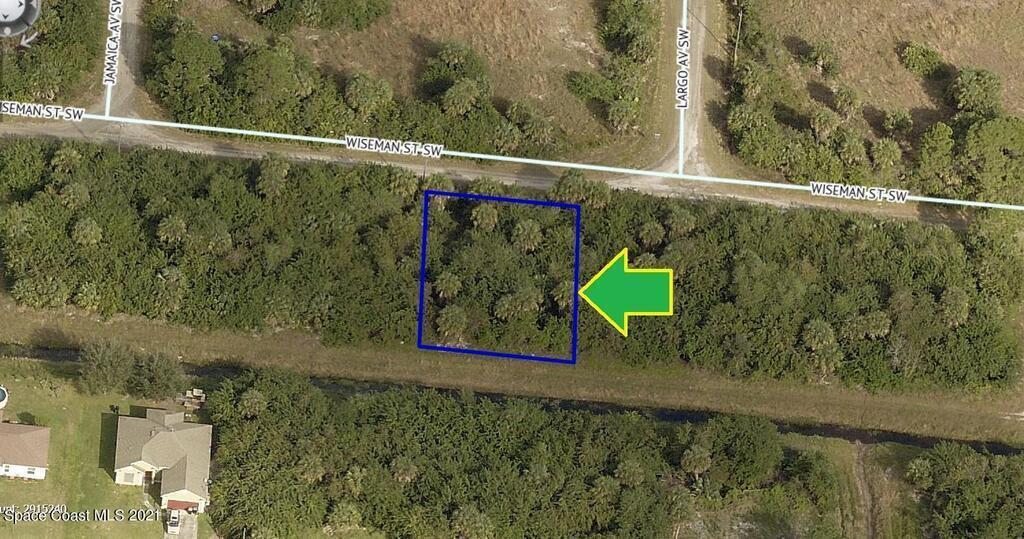 One of 2 side-by-side adjacent lots available in Port Malabar Unit 49 of Palm Bay (the other is 684 Wiseman). This 0.23 acre buildable residential lot has a drainage canal in the rear allowing more privacy, and is just 1.9 miles - 5 minutes to Westside Elementary School, 3.9 miles - 9 minutes to the Publix Supermarket, 15.5 miles - 31 minutes to Melbourne Airport, and 21.1 miles - 36 minutes to the beaches of Indianlantic. From exit #176 of I-95 go west on Palm Bay Road NE for .7 miles, left on Minton Road for 3.3 miles, right on Jupiter Boulevard for .1 mile, left on DeGroodt Road SW for 3.3 miles, right on Osmosis Drive for 1.0 mile, left on Madden Avenue for .3 miles, and left on Wiseman Street. The lot will be on your right.