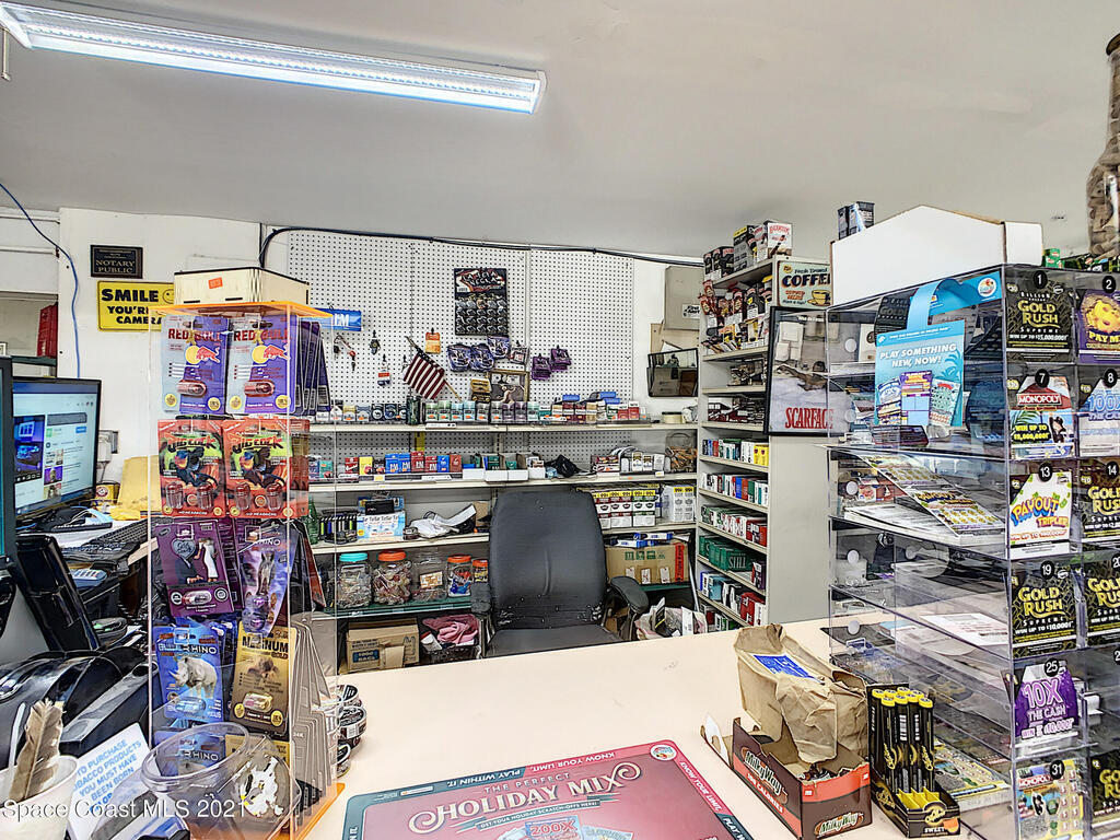 This is a wonderful opportunity to own a fully operational convenience store on a corner lot in beautiful Merritt Island. Sitting on almost a half an acre lot this 2,668 free standing store has a kitchen to prepare hot and cold food as well as 3 finished rooms one of which has a bathroom and shower. This lot has enough room to build a single family home behind the building. Inventory and bedroom furniture do not convey.