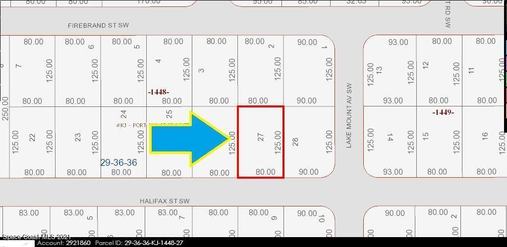 0.23 acre buildable residential lot available in Port Malabar Unit 30 of Palm Bay. Located in the southwest section, this lot is just 2.7 miles - 6 minutes to Westside Elementary School, 4.7 miles - 10 minutes to the Publix Supermarket, 16 miles - 30 minutes to Melbourne Airport, and 17.8 miles - 34 minutes to the beaches of Indialantic. From exit #176 of I-95 go west on Palm Bay Road NE for .7 miles, left on Minton Road for 3.3 miles, right on Jupiter Boulevard for .1 mile, left on DeGroodt Road SW for 4.6 miles, right on St. Andre Boulevard for .4 miles, left on Fitzpatrick Avenue for .3 miles, and right on Halifax Street. The lot will be on your right.