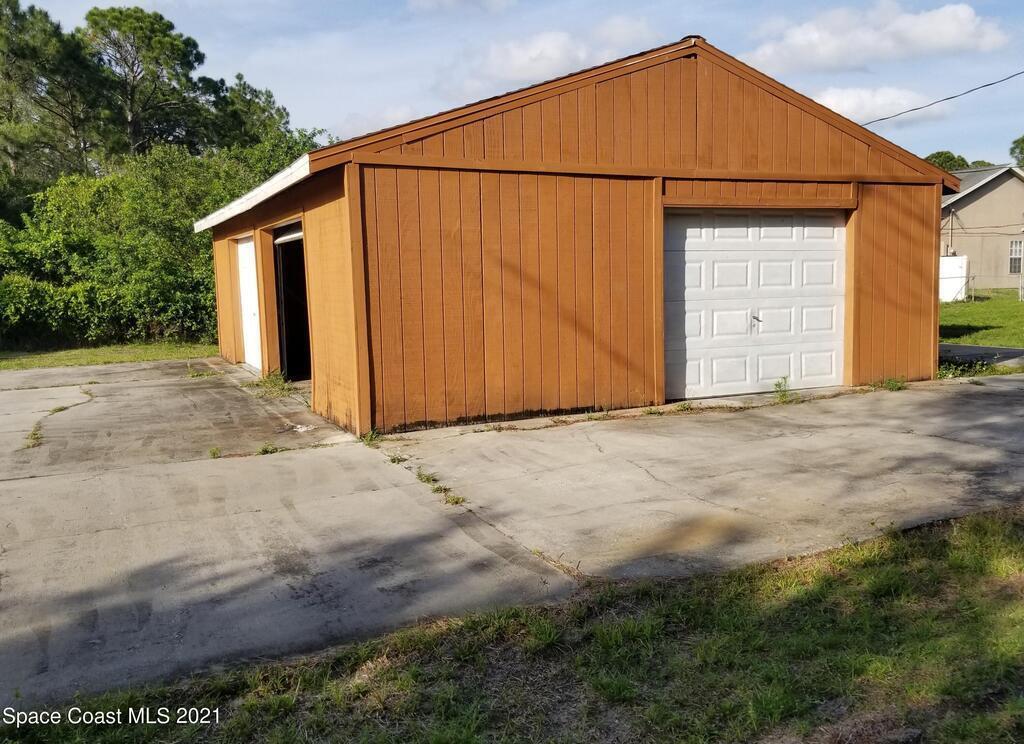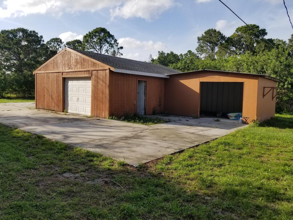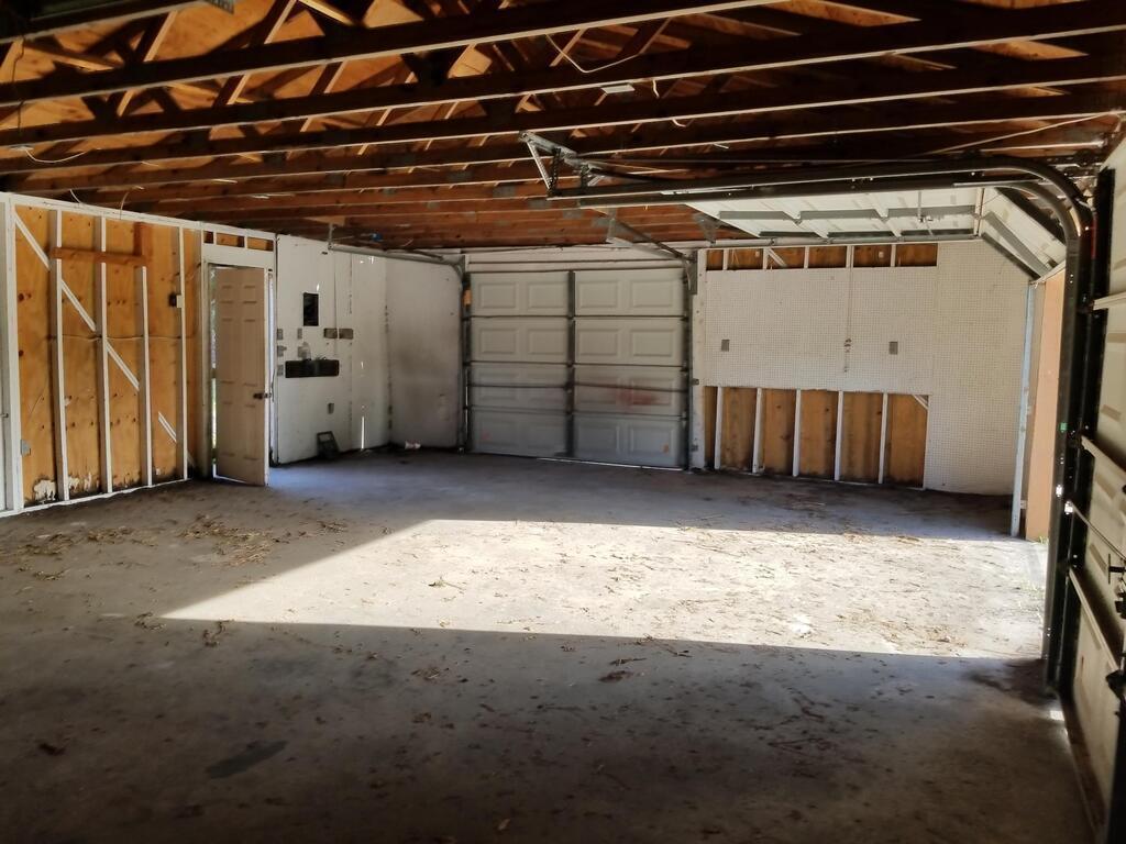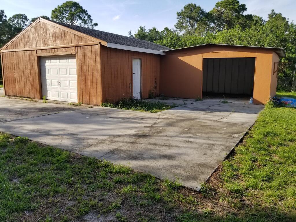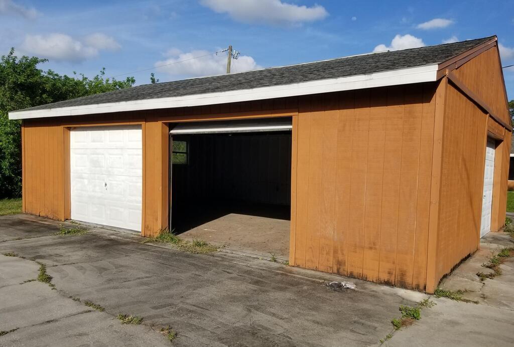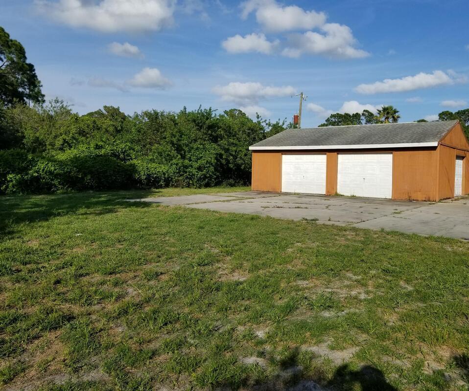 This 0.23 AC has a three bay door wood frame garage on it. There is a total of 2,220 sqft of concrete slab on the property. The three bay garage has a total of 768 sqft and the outbuilding has 324 sqft. Inside of the three bay garage, outlets, lights and a electrical box was installed. There is no electrical or plumbing currently connected to the property. The roof on the three bay garage has architectural shingles and the outbuilding has a metal roof on it. It was built in 1992. NOTE: The buyer will need to survey the property and place a small house on it, ''permits and survey permitting'', in order to use the three bay garage.