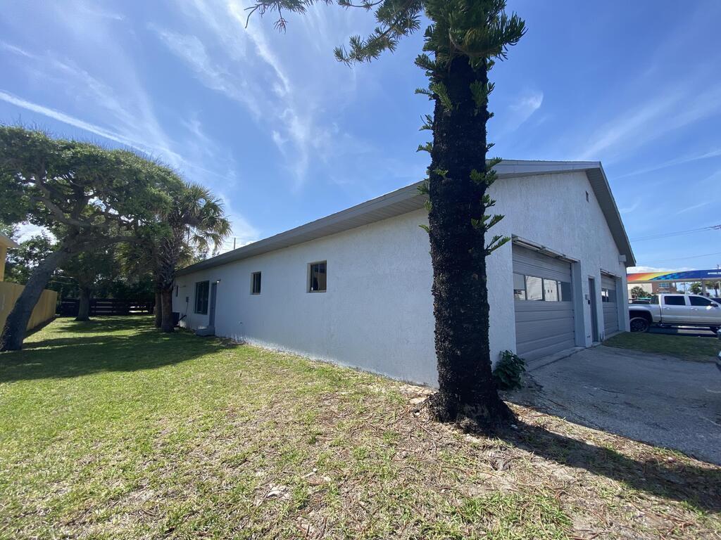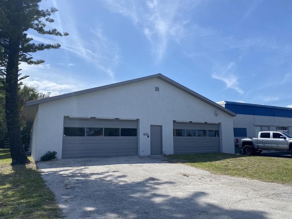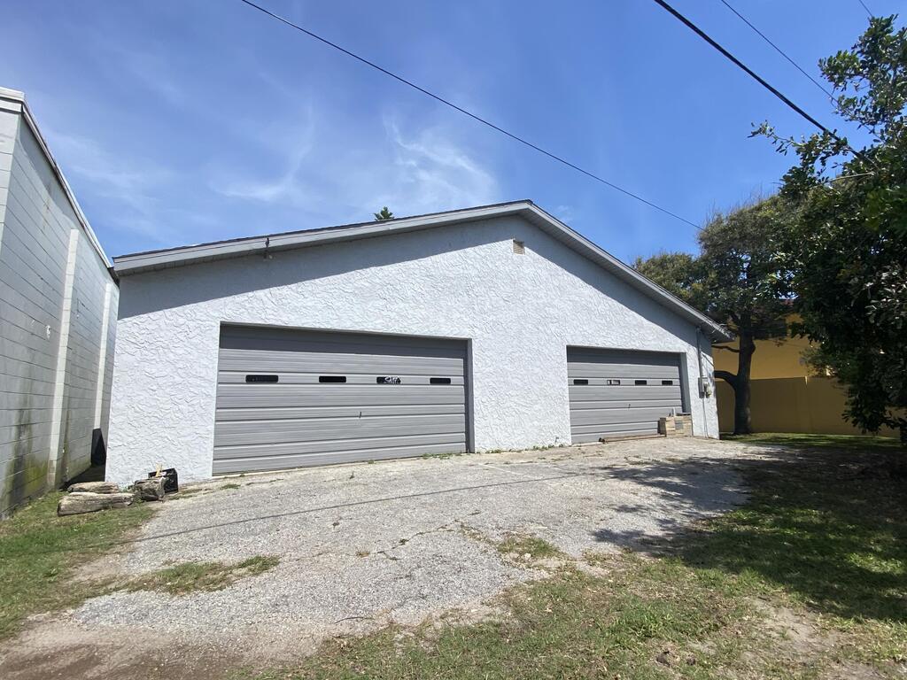 This warehouse/garage is ~5000 sf and is located near the downtown area of Cocoa Beach. It was previously used as an automotive repair shop and used car dealership. This building has four large roll-up doors, air conditioned office with plumbing and hot water. The size of this building offers a great deal of flexibility. There is a public alley to allow drive up access to the rear of the building.