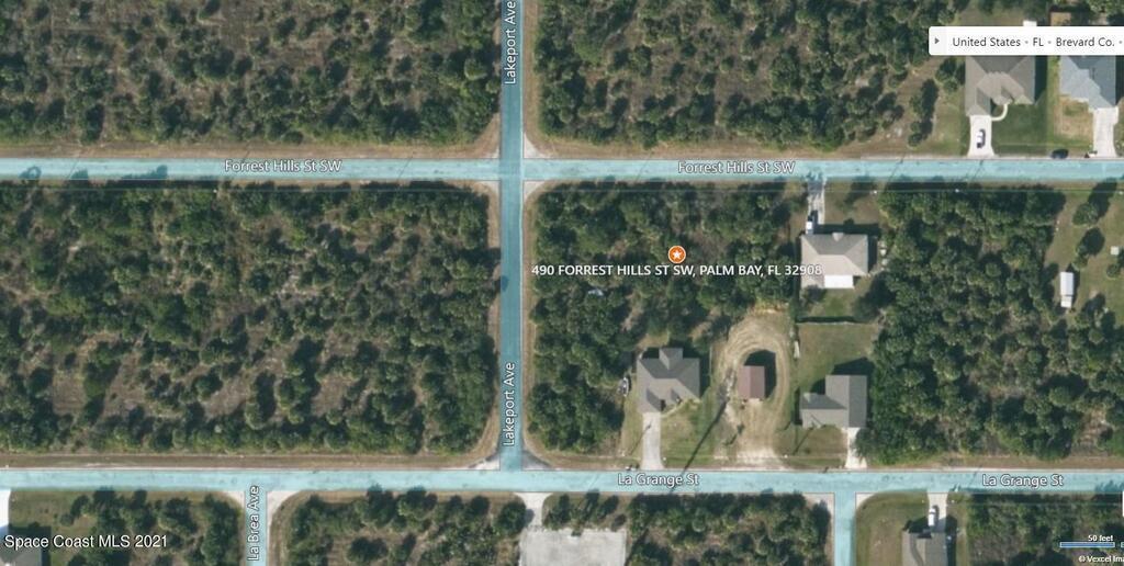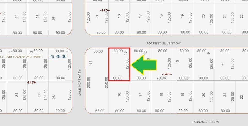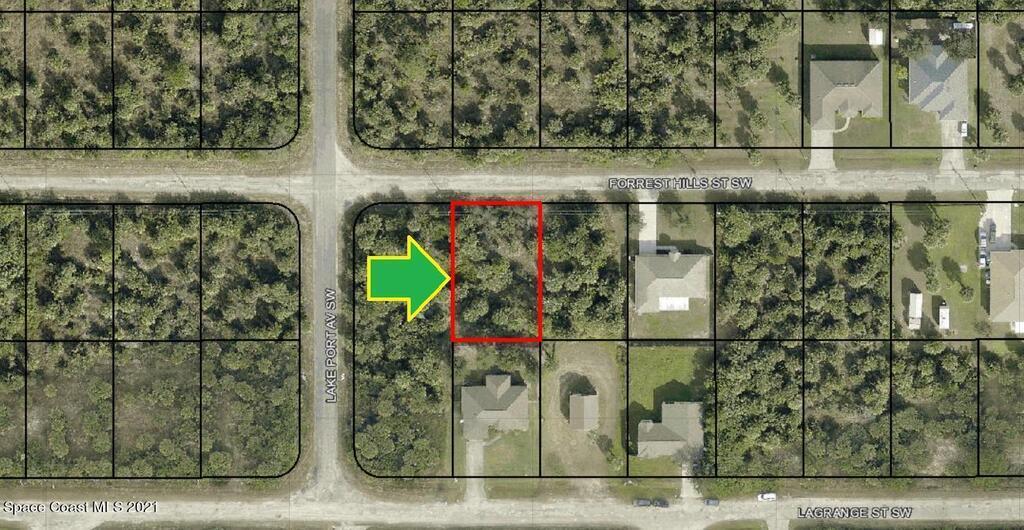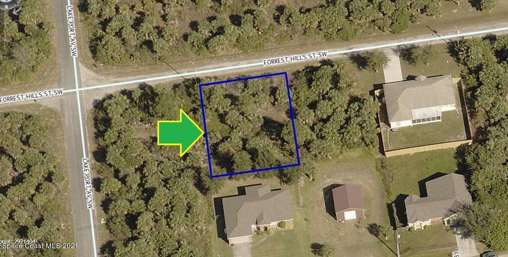0.23 acre buildable residential lot available in Port Malabar Unit 30 of Palm Bay. Located in the southwest section, this lot is just2.6 miles - 6 minutes to Westside Elementary School, 4.5 miles - 10 minutes to the Publix Supermarket, 15.8 miles - 32 minutes to Melbourne Airport, and 17.7 miles - 35 minutes to the beaches of Indialantic. From exit #176 of I-95 go west on Palm Bay Road NE for .7 miles, left on Minton Road for 3.3 miles, right on Jupiter Boulevard for .1 mile, left on DeGroodt Road SW for 4.6 miles, right on Saint Andre Boulevard for .4 miles, right on Fitzpatrick Avenue for .2 miles, and left on Forrest Hills Street. The lot will be on your left.