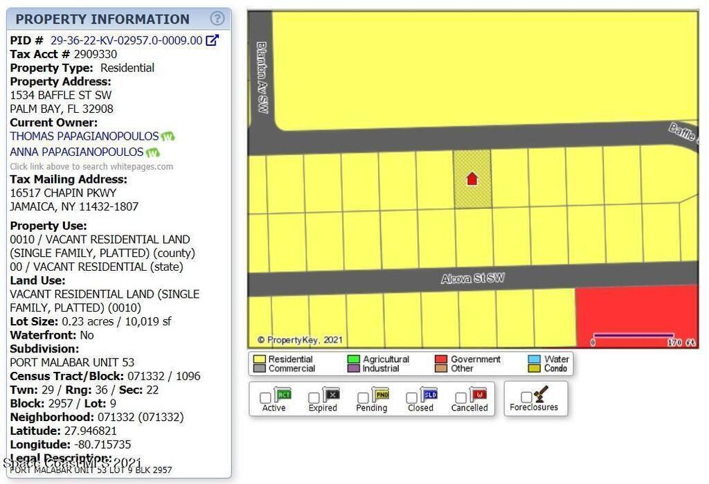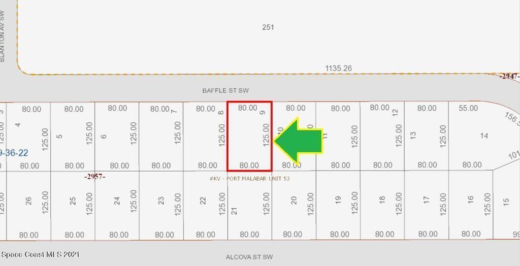 One of 2 side-by-side adjacent lots available in Port Malabar Unit #53 of Palm Bay( the other is 1526 Baffle). This 0.23 acre residential lot is in the southwest section. There are no utilities present at this lot or in this area; so the lot and the unit are not build-able at the present time. The seller has no knowledge of the property and makes no representations except for title. The property is only 3 .5 miles from Bayside High and Westside Elementary Schools. From exit #176 of I-95 go west on Palm Bay Road NE. Turn left on Minton Road for 3.3 miles, right on Jupiter Boulevard and left on DeGroodt Road for 2.5 miles. Turn right on J.A. Bombardier Boulevard for 2.6 miles, and right on Carter Avenue which turns left and becomes Baffle Street. The lot will be on your left.