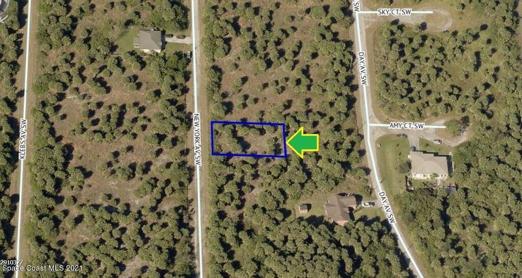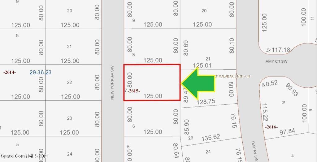 0.23 acre buildable residential lot available in Port Malabar Unit 49 of Palm Bay. Located in the southwest section, this lot is just 1.2 miles - 4 minutes to Bayside High School, 2.4 miles - 6 minutes to the Publix Supermarket, 14 miles - 29 minutes to Melbourne Airport, and 16.9 miles - 33 minutes to the beaches of Indialantic. From exit #176 of I-95 go west on Palm Bay Road NE for .7 miles, left on Minton Road for 3.3 miles, right on Jupiter Boulevard for .1 mile, left on DeGroodt Road SW for 2.5 miles, right on JA Bombardier Boulevard for .7 miles, left on Day Avenue, right on Banyan Street, and left on New York Avenue. The lot will be on your left.