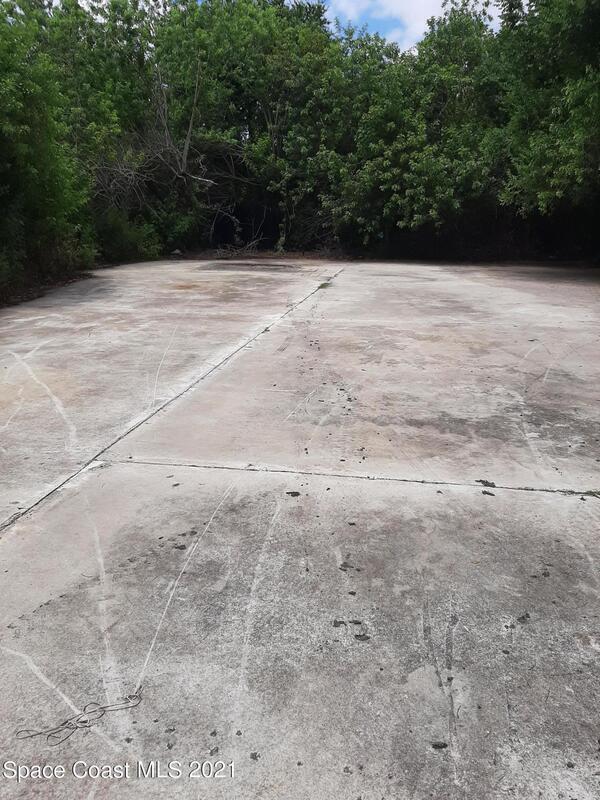 Here's a great opportunity. Over 1 acre of buildable land or a place to put a manufactured home or more. 39.2 miles to Orl. International Airport. 9.4 miles to Cocoa Beach. 2.2 miles to Cocoa Village on the Indian River. Electric, water and septic already in place. Concrete slab 54ft wide and 115 ft long. Ability to do so many amazing things! Very private. No HOA.