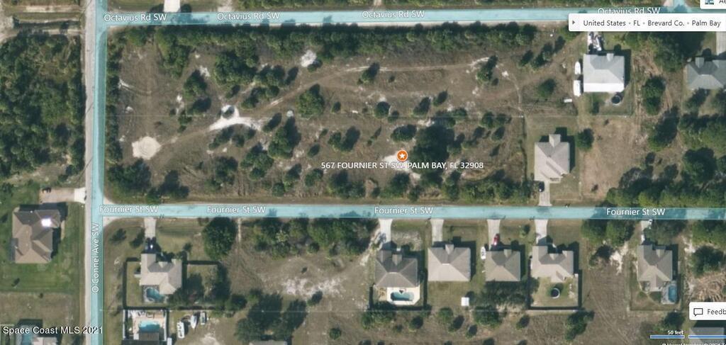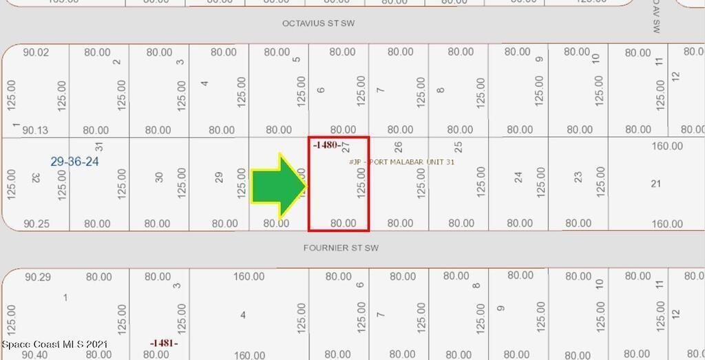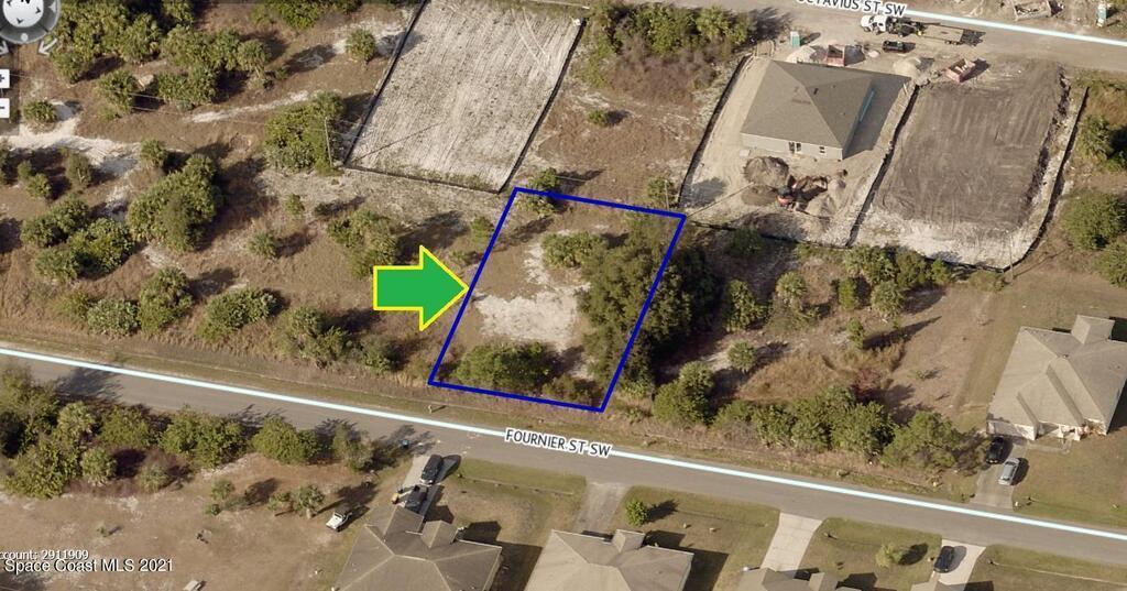 One of 2 side-by-side adjacent lots available in Port Malabar Unit 31 of Palm Bay (the other is 573 Fournier). Located in the southwest section, this 0.23 acre residential buildable lot has city water available and is just 1.2 miles - 4 minutes to Westside Elementary School, 3.1 miles - 7 minutes to the Publix Supermarket, 14.6 miles - 29 minutes to Melbourne Airport, and 17.6 miles - 35 minutes to the beaches of Indialantic. From exit #176 of I-95 go west on Palm Bay Road NE for .7 miles, left on Minton Road for 3.3 miles, right on Jupiter Boulevard, left on DeGroodt Road SW for 3.3 miles, right on Osmosis Drive for .5 miles, right on Dexter Avenue for .2 miles, and left on Fournier Street. The lot will be on your right.