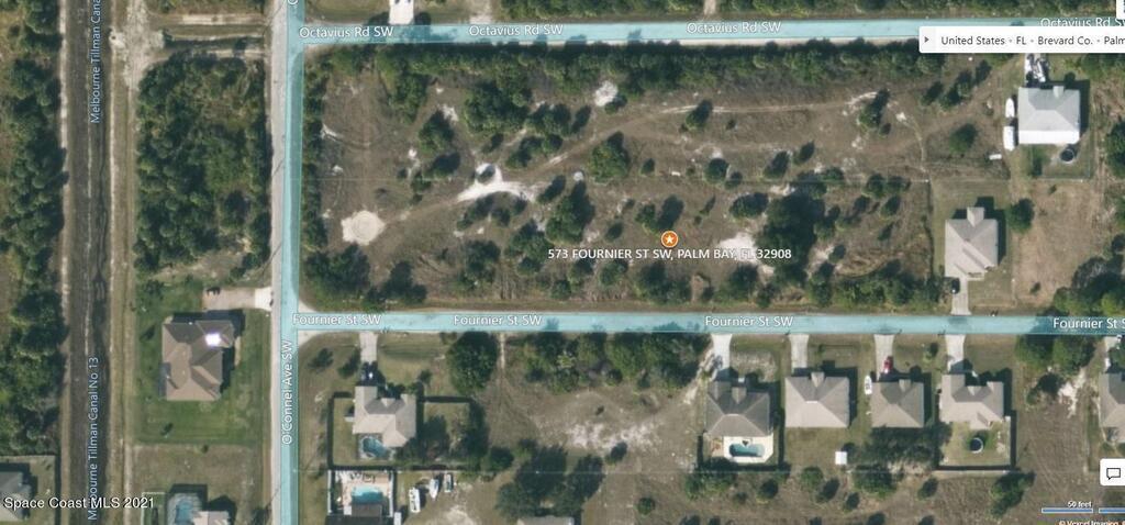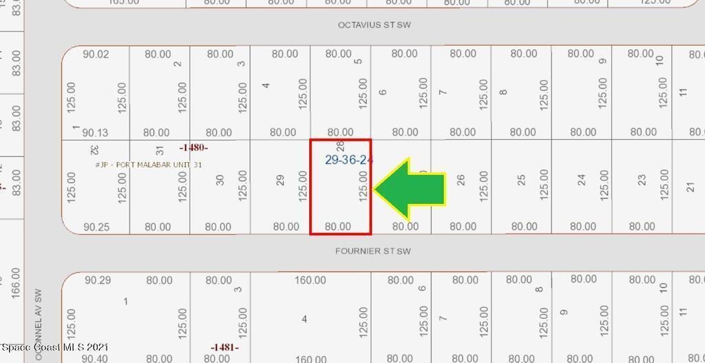 One of 2 side-by-side adjacent lots available in Port Malabar Unit 31 of Palm Bay (the other is 567 Fournier). Located in the southwest section, this 0.23 acre residential buildable lot has city water available and is just 1.2 miles - 4 minutes to Westside Elementary School, 3.1 miles - 7 minutes to the Publix Supermarket, 14.6 miles - 29 minutes to Melbourne Airport, and 17.6 miles - 35 minutes to the beaches of Indialantic. From exit #176 of I-95 go west on Palm Bay Road NE for .7 miles, left on Minton Road for 3.3 miles, right on Jupiter Boulevard, left on DeGroodt Road SW for 3.3 miles, right on Osmosis Drive for .5 miles, right on Dexter Avenue for .2 miles, and left on Fournier Street. The lot will be on your right.