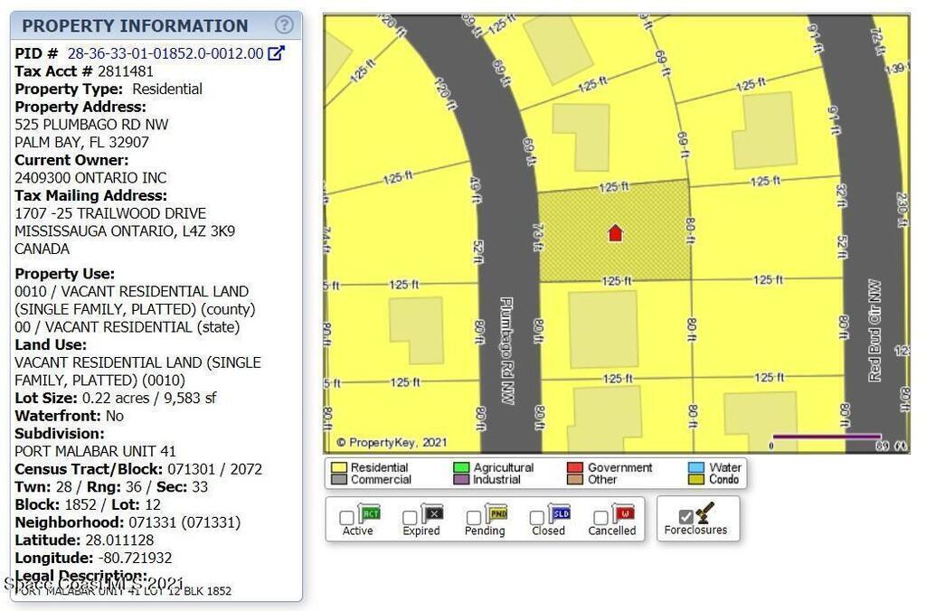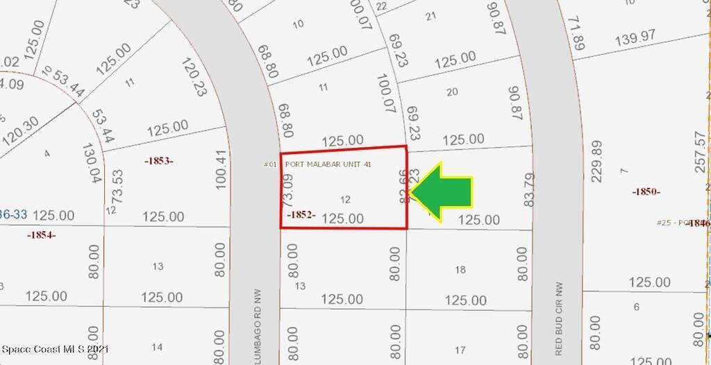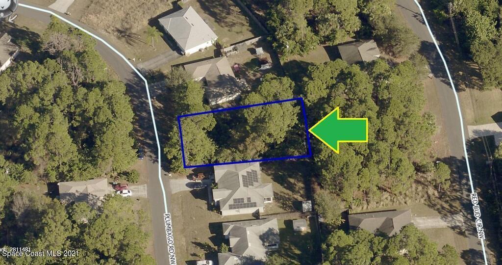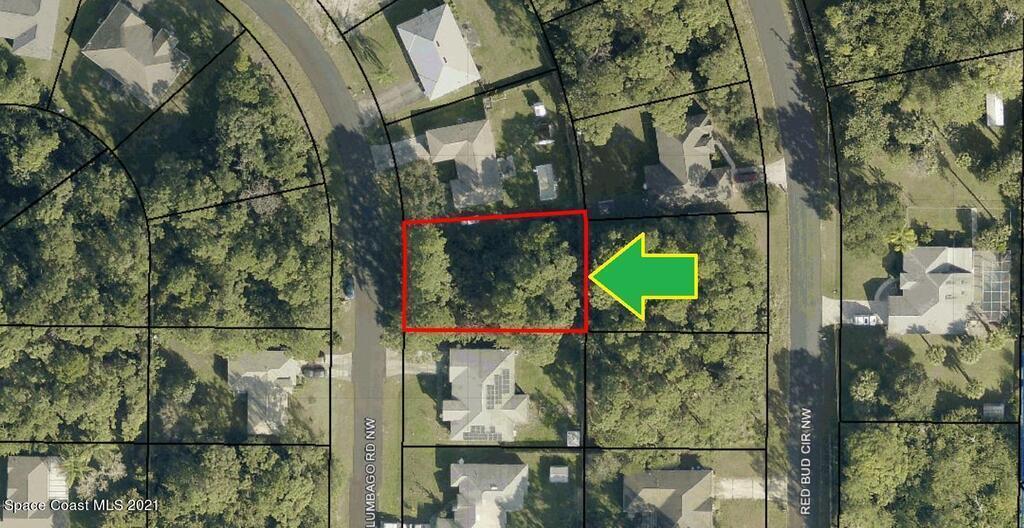 0.22 acre buildable residential lot available in Port Malabar Unit 41 of Palm Bay. Located in the northwest section, this lot is just 3 miles - 6 minutes to Heritage High School, 3.7 miles - 8 minutes to the Winn Dixie Supermarket, 15.5 miles - 25 minutes to Melbourne Airport, and 17.9 miles - 32 minutes to the beaches of Indialantic. From exit #180 of I-95 go west on US-192 for .5 miles, left on St. Johns Heritage Parkway for 6.1 miles, left on Malabar Road for 1.3 miles, left on Krassner Drive for .9 miles, right on Red Bud Circle, left on Red Bud Circle, and right on Plumbago Road. The lot will be on your right.