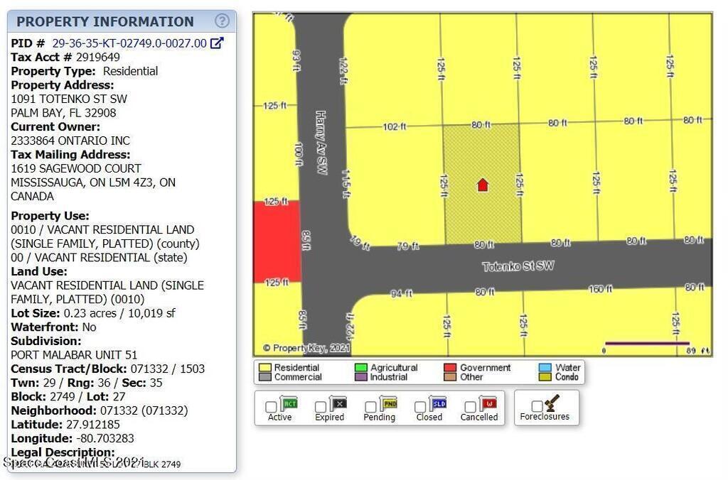 Property Listing Details for 1091 Totenko Street, Palm Bay, FL 32908