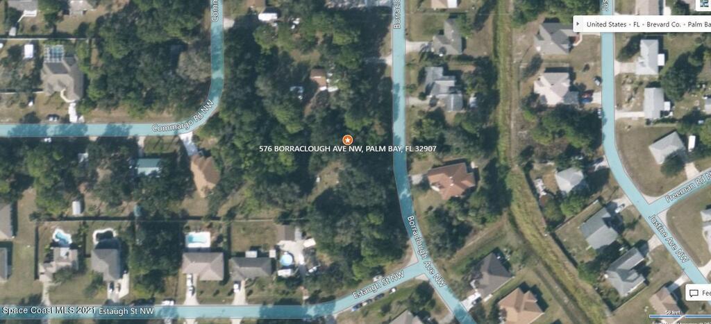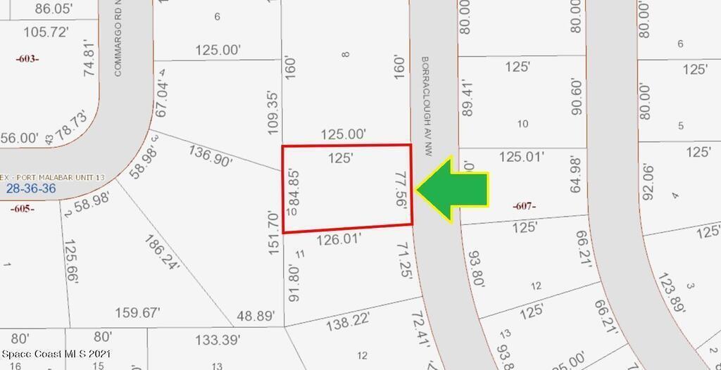 0.24 acre buildable residential lot available in Port Malabar Unit 13 of Palm Bay. Located in the northwest section, this lot has city water and sewer available and is just 1.1 mile - 4 minutes to McAuliffe Elementary School, 2.9 miles - 8 minutes to the Publix Supermarket, 9.9 miles - 23 minutes to Melbourne Airport, and 12.6 miles - 28 minutes to the beaches of Indialantic. From exit #176 of I-95 go west on Palm Bay Road NE for .7 miles, left on Minton Road for 1.7 miles, right on Americana Boulevard for .8 miles, right on Crystal Mist Road for .1 mile, and right on Borraclough Avenue. The lot will be on your left.