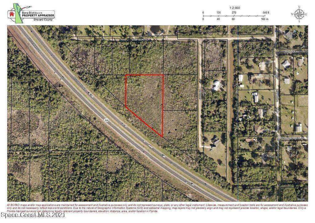 3.07 acres. The only right of way bordering this property is SR 528. General use Zoning. No utility's or county roads lead to the property.Seller is highly motivated to sell. Bring offers.