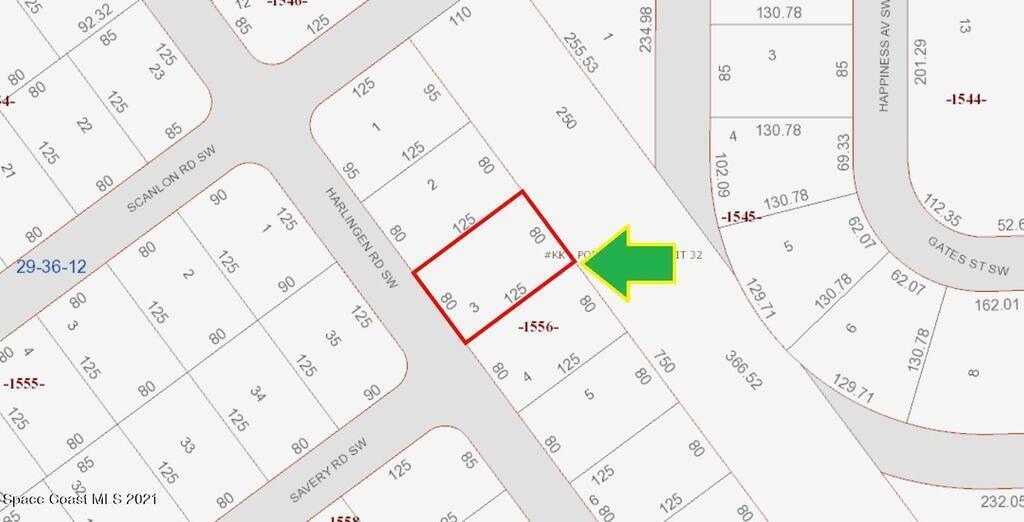 0.23 acre buildable residential lot available in Port Malabar Unit 32 of Palm Bay. Located in the southwest section, this lot has a utility easement in the rear allowing more privacy, and is just 1.7 miles - 4 minutes to Bayside High School, 3 miles - 7 minutes to the Publix Supermarket, 12 miles - 27 minutes to Melbourne Airport, and 14.9 miles - 32 minutes to the beaches of Indialantic. From exit #176 of I-95 go west on Palm Bay Road NE for .7 miles, left on Minton Road for 3.3 miles, right on Jupiter Boulevard for .1 mile, left on DeGroodt Road for 1.0 mile, right on Sawyer Street for .4 miles, and right on Harlingen Road. The lot will be on your right.