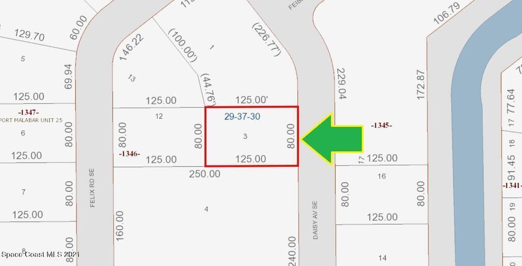 0.23 acre buildable residential lot available in Port Malabar Unit 25 of Palm Bay. Located in the southeast section, this lot is just 2.5 miles - 6 minutes to Westside Elementary School, 3.3 miles - 9 minutes to the Publix Supermarket, 15.1 miles - 33 minutes to Melbourne Airport, and 17 miles - 35 minutes to the beaches of Indialantic. From exit #173 of I-95 go west on Malabar Road for .2 miles, left on San Filippo Drive SE for 6.9 miles, right on Fortune Avenue for .2 miles, continue on Cres Street for .3 miles, right on Freemont Avenue, right on Todd Street, then road turns left and becomes Daisy Avenue. The lot will be on your left.