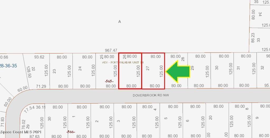 Almost a 1/2 acre buildable residential lot available in Port Malabar Unit 14 of Palm Bay! Located in the northwest section, this lot is just 1.7 miles - 5 minutes to McAuliffe Elementary School, 2 miles - 6 minutes to the Winn Dixie Supermarket, 10.3 miles - 24 minutes to Melbourne Airport, and 13 miles - 30 minutes to the beaches of Indialantic. From exit #176 of I-95 go west on Palm Bay Road NE for .7 miles, left on Minton road for 1.7 miles, right on Americana Boulevard NW for 1.0 mile, right on Ontario Street NW for .3 miles, right on Consolata Avenue for .1 mile, and left on Doverbrook Road. The lot will be on your right.