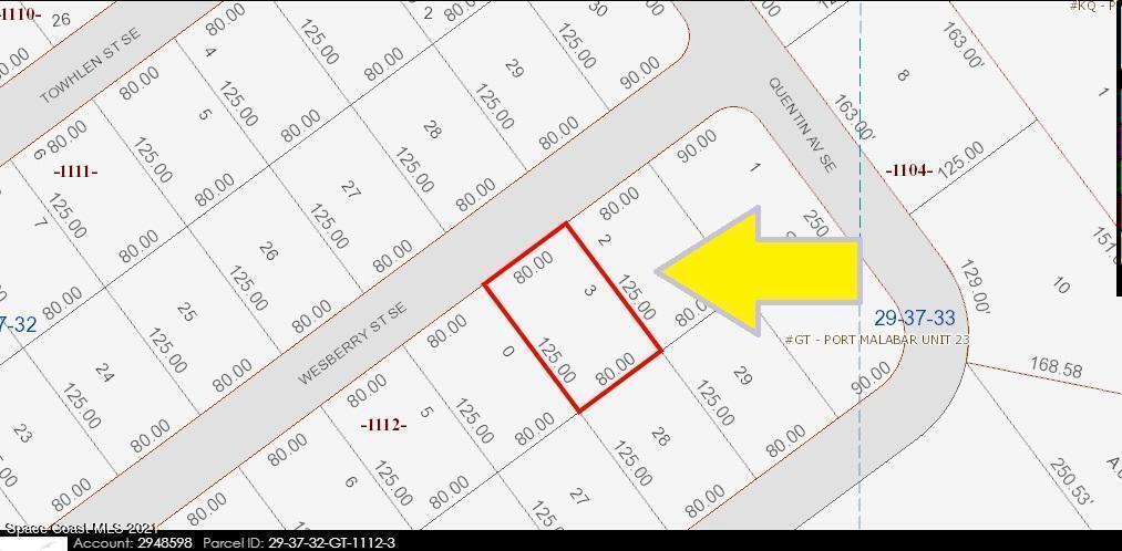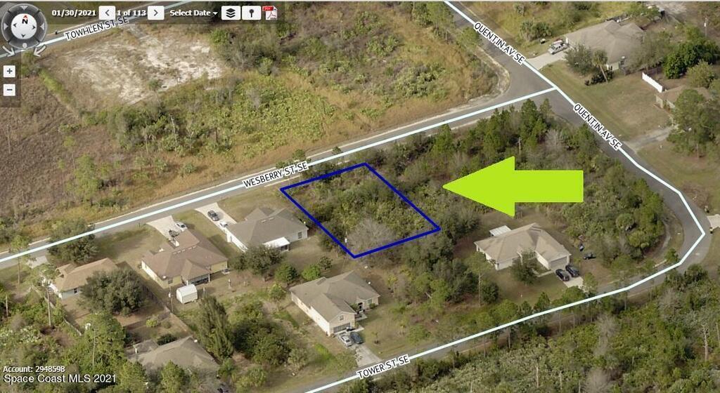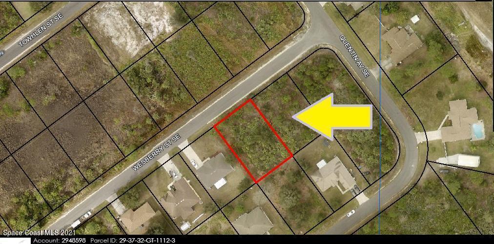 0.23 acre buildable single family residential lot [Rs2 Zoning] available in Port Malabar Unit #23 of Palm Bay. Nicely located in the SE Section near the PGA Majors Golf Course and Bayside Lakes, this lot is just 3.3 miles -8 minutes- to Publix Shopping, 4.8 miles -9 minutes- to Bayside High and Westside Elementary Schools, 13.7 miles - 28 minutes to the Melbourne International Airport, and just 15.3 miles - 28 minutes to the beaches at Indialantic. From Exit #173 of I-95 go west on Malabar Road, Turn left on San Filippo Drive SE and proceed south for 5.4 miles. Turn left on Quentin Avenue SE and right on Wesberry Street SE. The lot will be on the left.