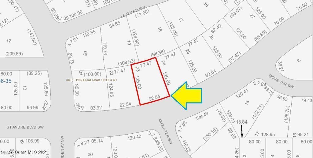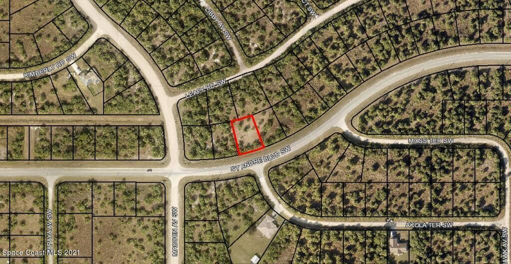 One of 2 side-by-side adjacent lots available in Port Malabar Unit 49 of Palm Bay (the other is 741 St. Andre). Located in the southwest section, this 0.24 acre buildable residential lot is just 2.8 miles - 5 minutes to Westside Elementary School, 4.8 miles - 9 minutes to the Publix Supermarket, 16 miles - 33 minutes to Melbourne Airport, and 18 miles - 36 minutes to the beaches of Indialantic. From exit #176 of I-95 go west on Palm Bay Road NE for .7 miles, left on Minton Road for 3.3 miles, right on Jupiter Boulevard for .1 mile, left on DeGroodt Road SW for 4.6 miles, and right on St. Andre Boulevard. The lot will be on your right in 1.1 miles.