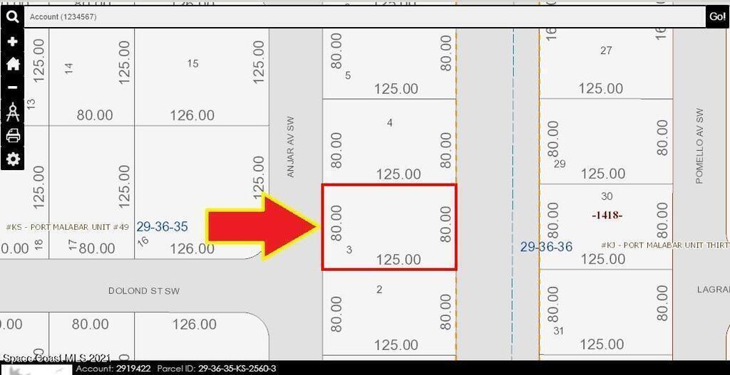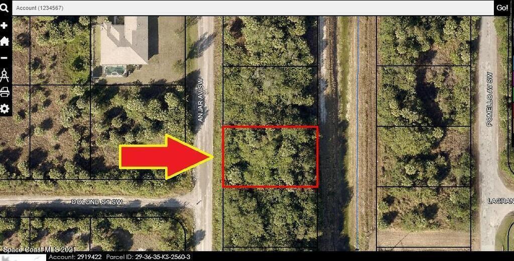 0.23 acre buildable residential lot available in Port Malabar Unit 49 of Palm Bay. Located in the southwest section, this lot has a drainage canal in the rear allowing more privacy, and is just 3.3 miles - 7 minutes to Westside Elementary School, 5.3 miles - 11 minutes to the Publix Supermarket, 16.5 miles - 34 minutes to Melbourne Airport, and 21.2 miles - 36 minutes to the beaches of Indialantic. From exit #173 of I-95 go west on Malabar Road for .2 miles, left on San Filippo Drive SE for 7.3 miles, left on St. Andre Boulevard for 1.2 miles, right on Madden Avenue for .1 mile, right on Leafy Road for .3 miles, road turns left and becomes Anjar Avenue. The lot will be on your right.