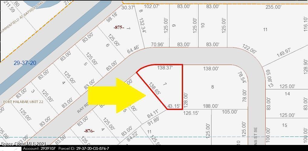 Oversized 0.28 acre single family residential lot with 138 feet of road frontage [Rs2 Zoning] available in Port Malabar Unit #22 of Palm Bay. Nicely located in the SE Section of Palm Bay near the PGA Majors Golf Course and Bayside Lakes Subdivision, this lot is just 2.7 miles -8 minutes- to Publix Shopping, 5.7 miles -12 minutes- to Bayside High and Westside Elementary Schools and the Shoppes of Palm Bay, and just 15 miles -32 minutes- to the beaches in Indialantic. From Exit #173 of I-95 go west on Malabar Road. Turn left on San Filippo Drive SE and proceed south for 4.8 miles. Turn right on Eldron Boulevard SE and right on Ray Road SE. The lot will be on the right.