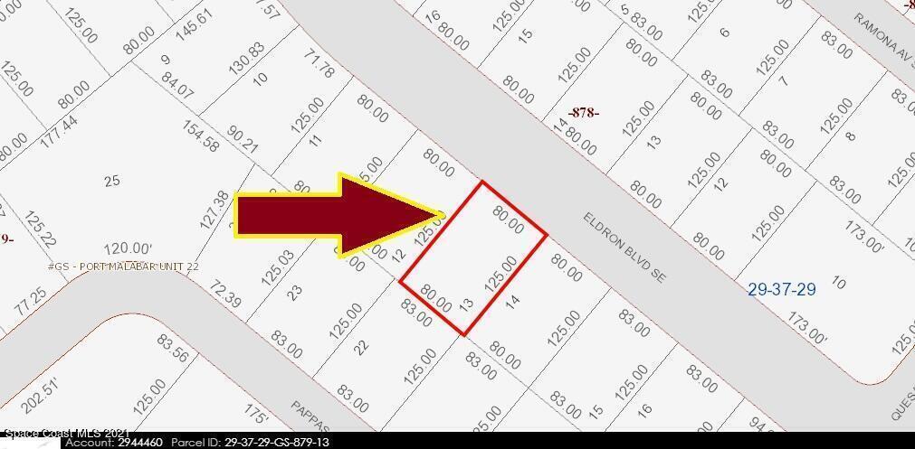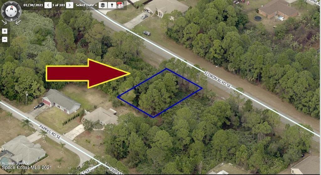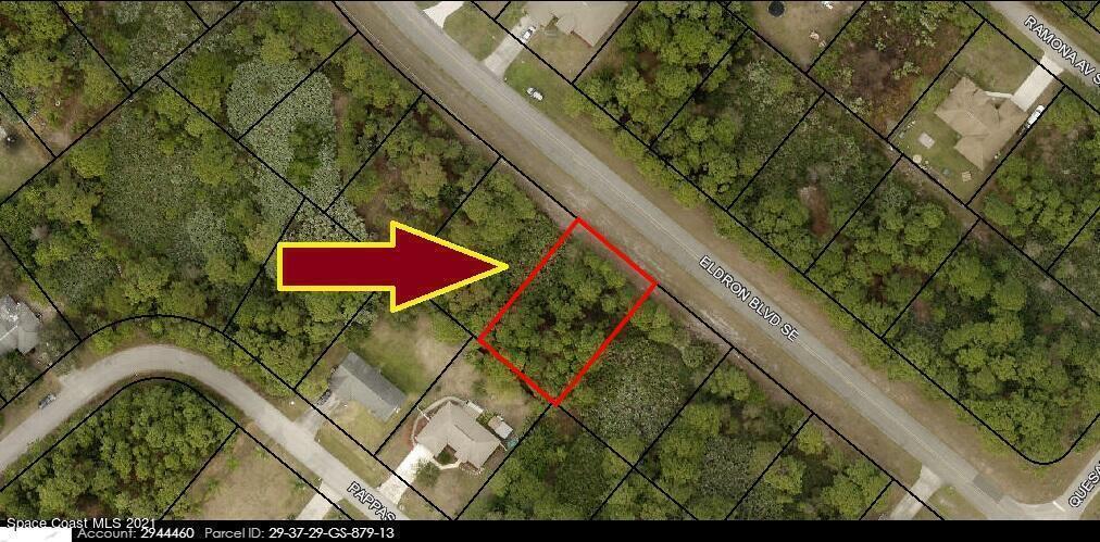 0.23 acre single family residential lot [Rs2 Zoning] available in Port Malabar Unit #22 of Palm Bay. Nicely located in the SE Section with main road frontage and near The PGA Majors Golf Course, this lot is just 3.9 miles -9 minutes- to Publix Shopping, 5.3 miles -9 minutes- to Bayside High and Westside Elementary Schools, 5.4 miles -11 minutes- to the Shoppes of Palm Bay, and just 14.6 miles -33 minutes- to the beaches in Indialantic. From Exit #173 of I-95 go west on Malabar Road. Turn left on San Filippo Drive SE and proceed south for 4.8 miles. Turn right on Eldron Boulevard and proceed 0.4 miles. The lot will be on the left.