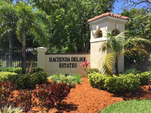 Hacienda's one of the last lots available! House/lot pkg available too! Paddle-boarder or Fisherman? Riverfront Buy! One of last remaining empty lots in South Merritt Island's Hacienda Del Sol Estates Homeowners Association with Riverfront ownership plus community parcel on the River. Use House/Lot Pkg also avail MLS#909779 Circular drive avail with just gates buyer can add to complete the entrance with. Buildable lot with 3.5 ft house pad in place, 236 ft dock variance by HOA, prior permit. Easement in place for already completed entry wall facade improvements and maintenance by HOA. Great for circular type drive. Tennis court community amenity. HOA variance