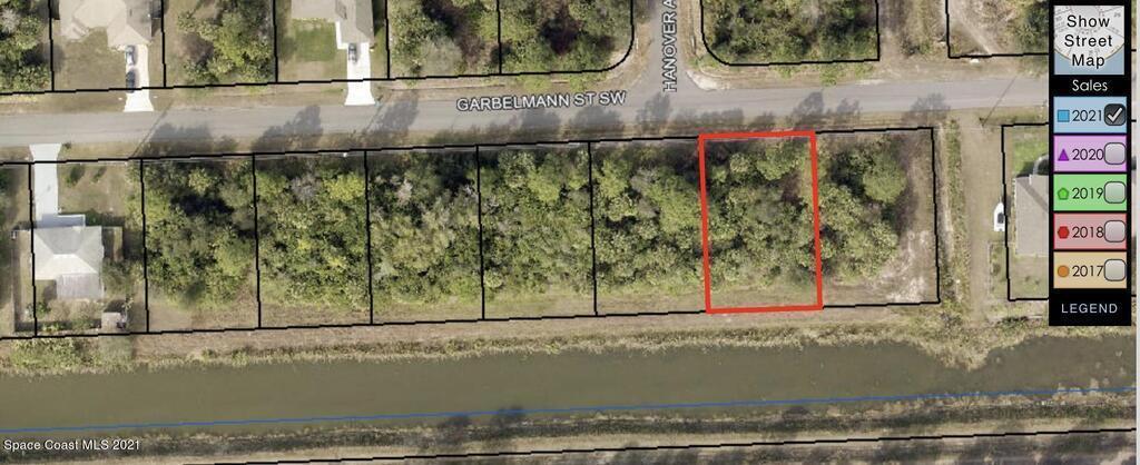 Dry lot waiting for a new home on quiet, newly paved street in Palm Bay Unit #32. Large drainage canal behind property provides plenty of privacy from backyard neighbors. Lot is close to Bayside Lakes shopping, I-95, Heritage Parkway, and schools.