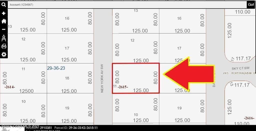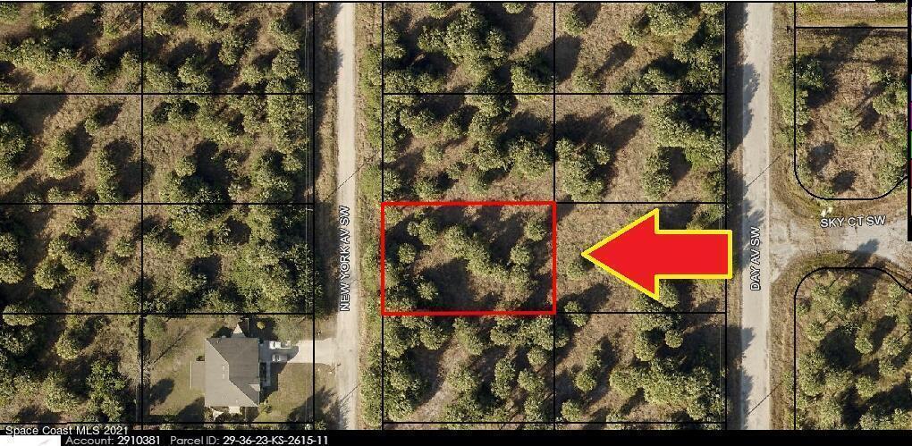 0.23 acre buildable single family residential lot available in Port Malabar Unit #49 of Palm Bay. Power line located across the street. Located in the southwest section near the famous Compound area, this lot is just 1.1 miles - 4 minutes to Bayside High School, 2.4 miles - 6 minutes to the Publix Supermarket, 14 miles - 30 minutes to Melbourne Airport, and 17 miles - 34 minutes to the beaches of Indialantic. From Exit #176 of I-95 go west on Palm Bay Road NE for .7 miles, left on Minton Road for 3.3 miles, right on Jupiter Boulevard SW for .1 mile, left on DeGroodt Road SW for 2.5 miles, right on J.A. Bombardier Boulevard for .7 miles, left on Day Avenue for 322 feet, right on Banyan Street for 295 feet, and left on New York Avenue. The lot will be on your left.