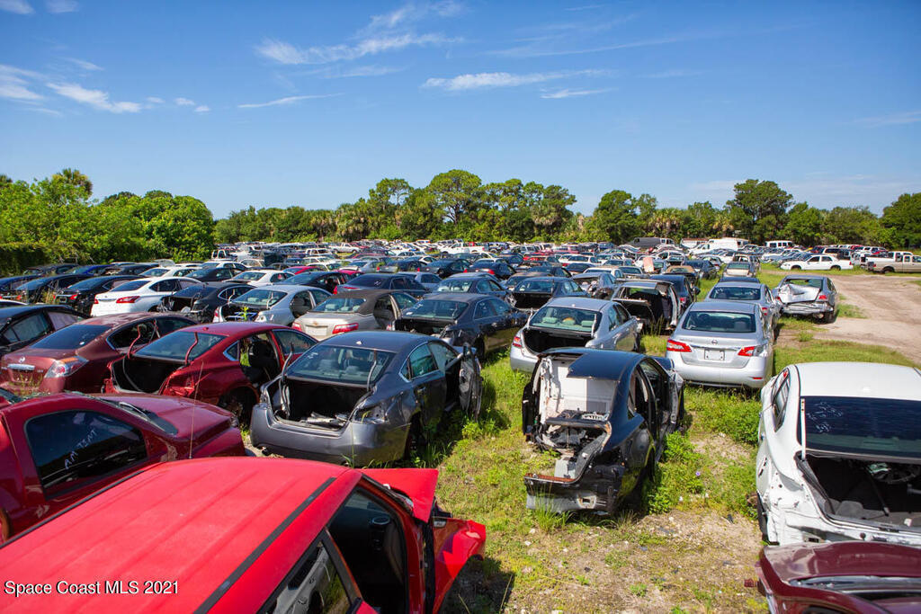Business and Real Estate included! Auto salvage yard and used auto supply business with 3.91 acres of prime frontage on US Hwy 1 (Dixie Hwy) in Palm Bay and Melbourne. 27,000 vehicles per day, traveling on 4 lanes southbound, and 3 lanes northbound. Fully fenced-in with approximately 500 late model cars, trucks, and SUV's. Includes all inventory, which consists of a forklift, two car lifts, engine lifts and racks, CarPart and CCC Pinnacle software systems, and much more!Alternative property uses include self-storage, warehousing, light manufacturing, auto sales, and service stations.