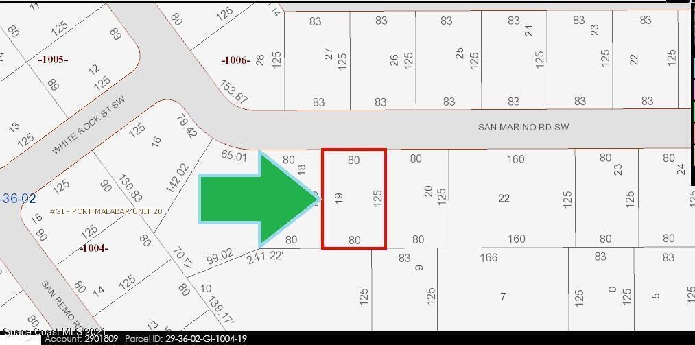 0.23 acre buildable lot [Rs2 Zoning] available in Port Malabar Unit #20 of Palm Bay. Conveniently located in the SW Section of Palm Bay, your new property is just 1.2 miles -3 minutes- to Jupiter Elementary School, 3.8 miles -7 minutes- to the US Post Office, 4.0 miles -8 minutes- to the Walmart Supercenter and the I-95 ramp on Malabar Road, and only 13.8 miles -25 minutes- to the Beach! A nice consideration for your first time home buyer, builder, or investor.