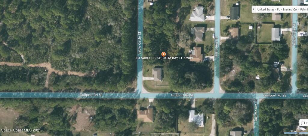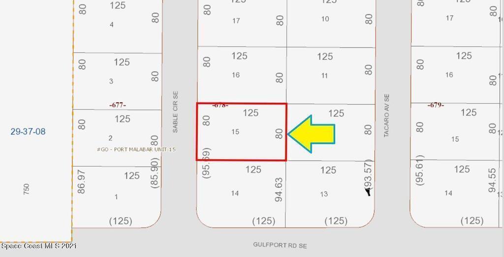 One of 2 side-by-side adjacent lots available in Port Malabar Unit 15 of Palm Bay (the other is 906 Sable). Located in the southeast section, this buildable residential lot is just 1.1 miles - 3 minutes to Columbia Elementary School, 2.6 miles - 7 minutes to the Publix Supermarket, 10.3 miles - 22 minutes to Melbourne Airport, and 15 miles - 25 minutes to the beaches of Indialantic. From exit #173 of I-95 go west on Malabar Road for .2 miles, left on San Filippo Drive SE for 1.8 miles, right on Alcazar Street SE for .2 miles, right on Yale Avenue SE for .1 mile, road turns left and becomes Gulfport Road, then turn right on Sable Circle. The lot will be on your right.