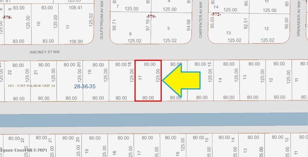 0.23 acre buildable residential lot available in Port Malabar Unit 14 of Palm Bay. Located in the northwest section, this lot has a drainage canal in the rear allowing more privacy, and is just 2.2 miles - 6 minutes to the Winn Dixie Supermarket, 2.4 miles - 6 minutes to McAuliffe Elementary School, 10.7 miles - 24 minutes to Melbourne Airport, and 13.6 miles - 29 minutes to the beaches of Indialantic. From exit #176 of I-95 go west on Palm Bay Road NE for .7 miles, left on Minton Road for .2 miles, right on Emerson Drive for 1.5 miles, left on Jupiter Boulevard for 1.7 miles, and right on Siboney Street. The lot will be on your left. Owner financing available with $10K down, @ 6.875% for up to 3 years.