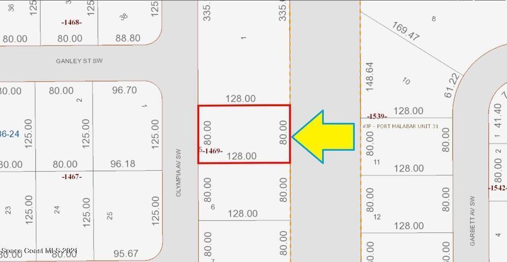 0.24 acre buildable residential lot available in Port Malabar Unit 31 of Palm Bay. Located in the southwest section, this lot has a drainage canal in the rear allowing more privacy, and is just .5 miles - 2 minutes to Bayside High School, and 1.8 miles - 5 minutes to the Publix Supermarket. From exit #176 of I-95 go west on Palm Bay Road NE for .7 miles, left on Minton Road for 3.3 miles, right on Jupiter Boulevard for .1 mile, left on DeGroodt Road for 2.5 miles, right on J.A.Bombardier Boulevard for .2 miles, and left on Olympia Avenue. The lot will be on your left.