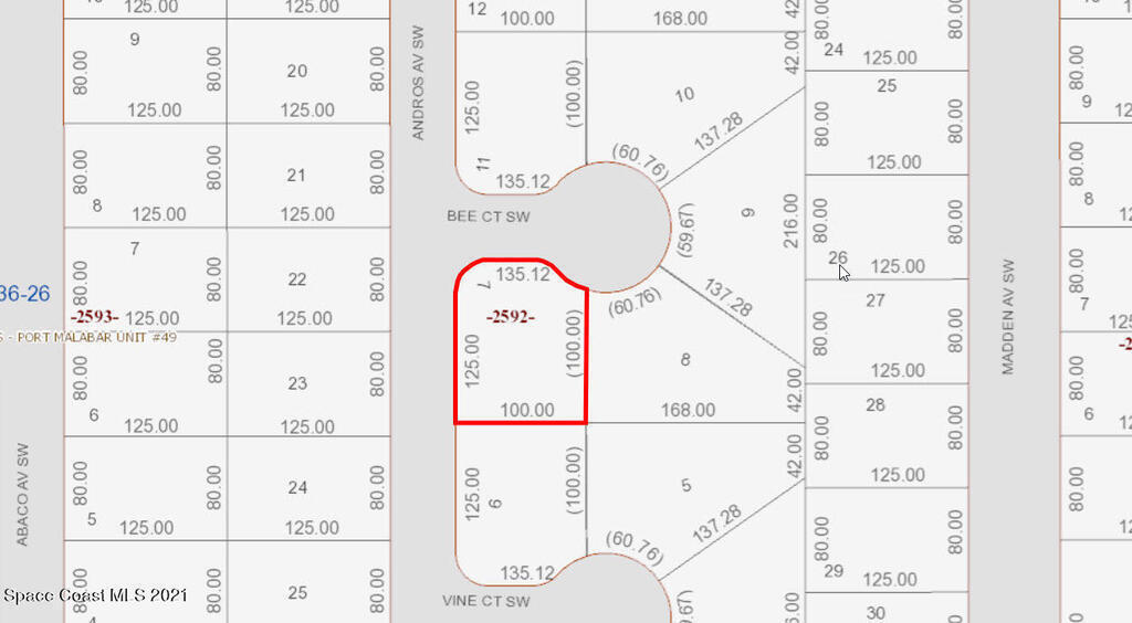 Build your beautiful home on this 0.27-acre residential buildable lot located in Port Malabar Unit 49. This corner lot sits on a cul-de-sac and is just driving minutes to schools, Palm Bay branch of Eastern Florida State College, local restaurants and grocery stores.