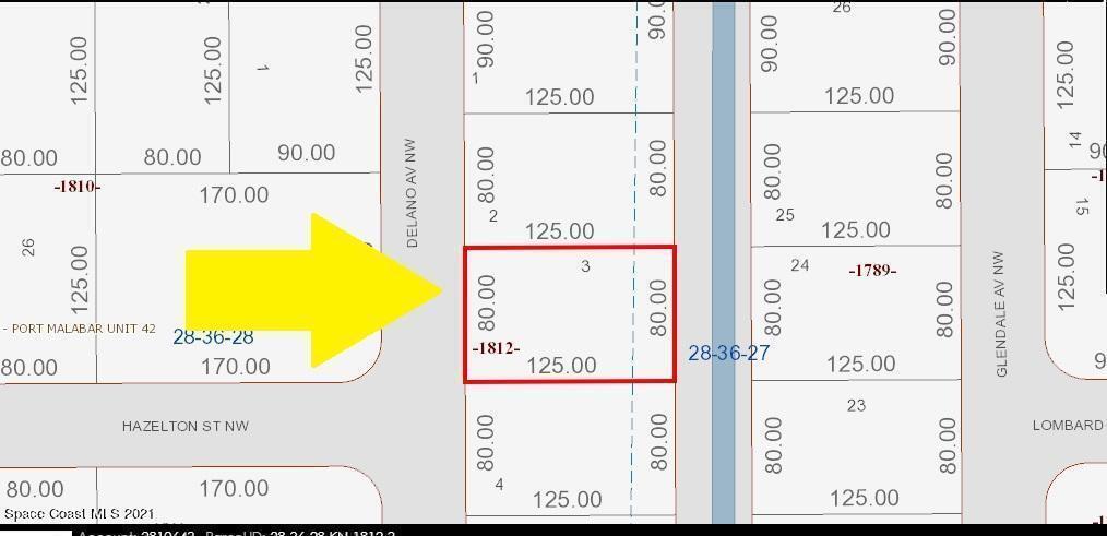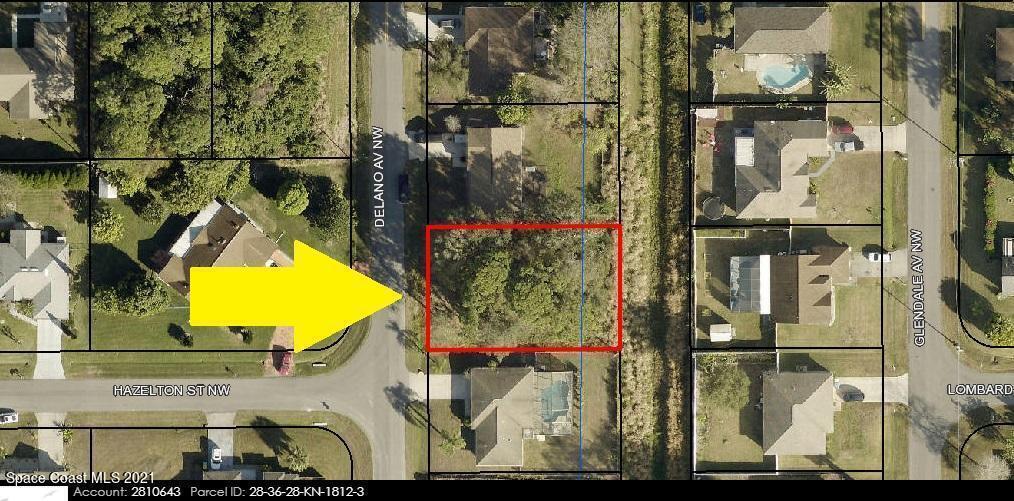 0.23 acre buildable single family residential lot [Rs2 Zoning] with city water available and a drainage right-of-way easement in the back of the property for sale in Unit #42. Nicely located in the desirable NW Section, this lot is just 4.8 miles -11 minutes- to Publix Shopping, 5.9 miles -13 minutes to the Walmart Supercenter, 1.1 miles -3 minutes- to Discovery Elementary School, and just 15.3 miles -30 minutes- to the beaches in Indialantic. From Exit #176 of I-95 go west on Palm Bay Road NE. Turn left on Minton Road and right on Emerson Drive NW. Proceed 2.5 miles west and turn left on Glencove Avenue NW. Proceed south for 1.1 miles and turn right on Pace Drive NW. Turn left at the 3rd cross street on Delano Avenue. The lot is on the left.