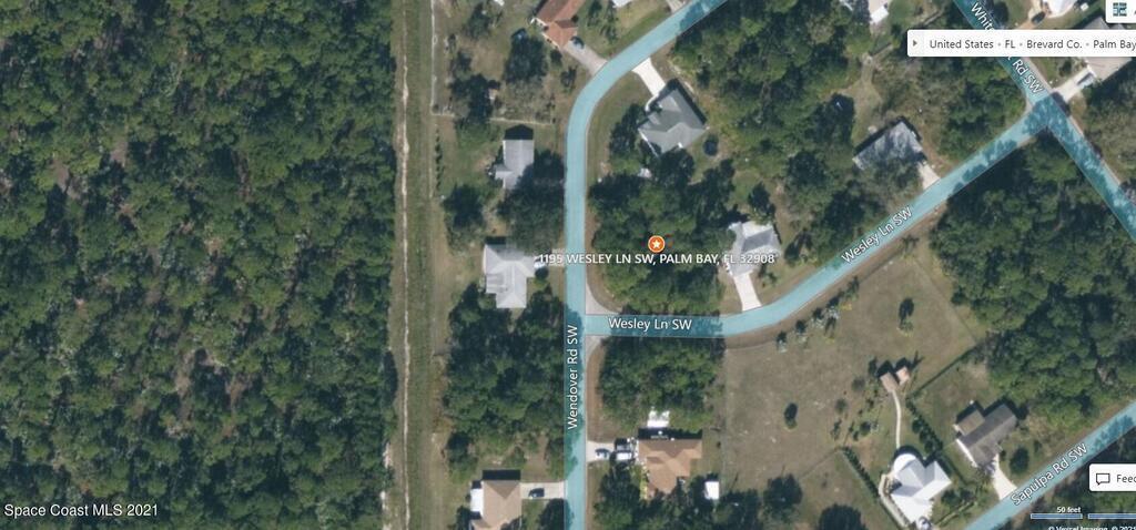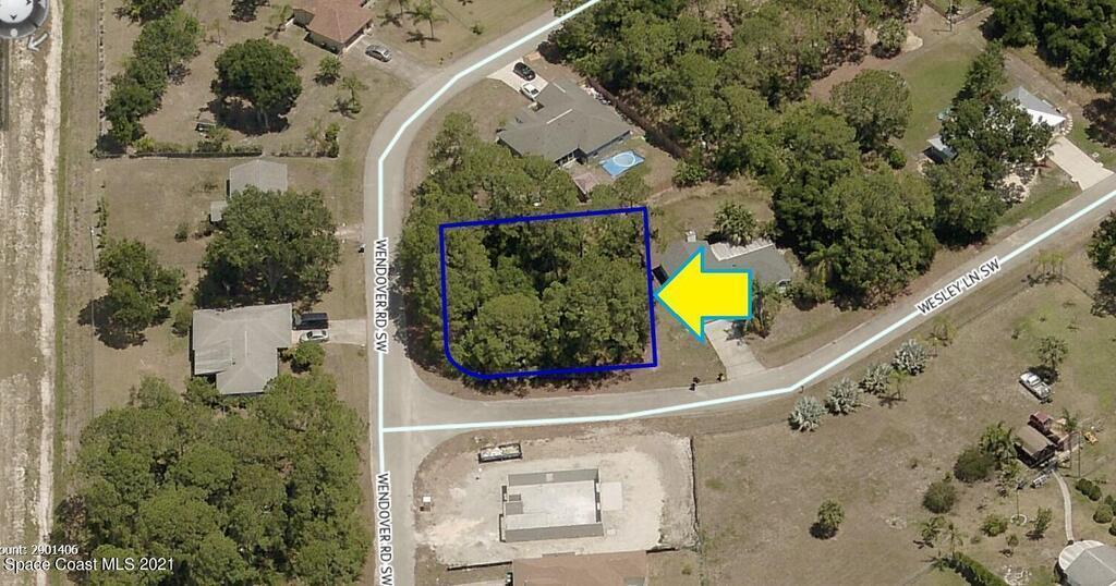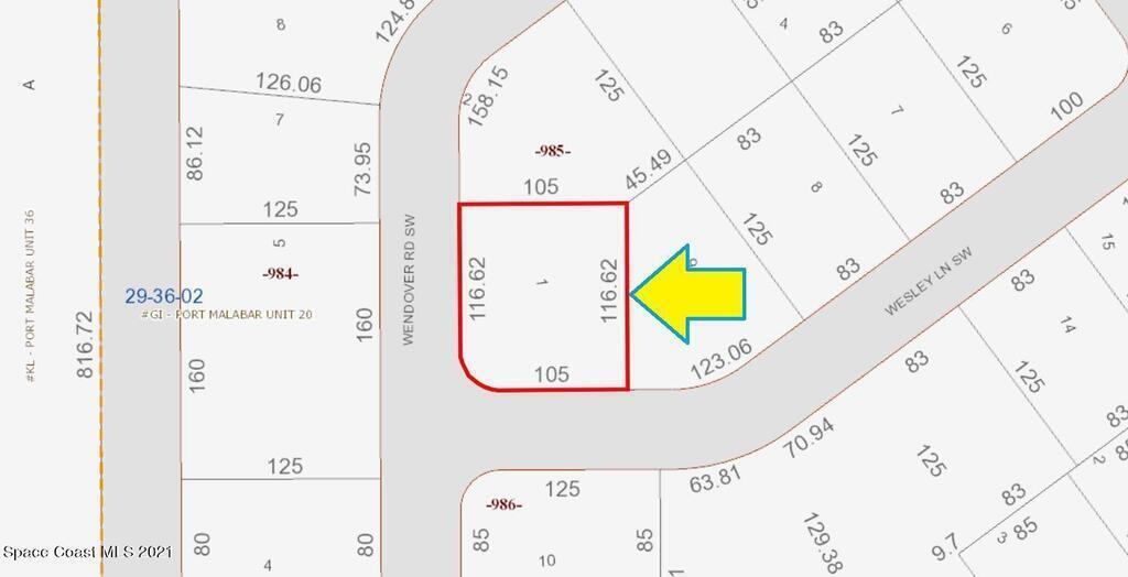 0.28 acre buildable residential Corner lot available in Port Malabar Unit 20 of Palm Bay. Located in the southwest section, this lot is just 1.6 miles - 5 minutes to Jupiter Elementary School, 2.3 miles - 6 minutes to the Winn Dixie Supermarket, 12.1 miles - 27 minutes to Melbourne Airport, and 14.7 miles - 32 minutes to the beaches of Indialantic. From exit #180 of I-95 go west on US-192 for .5 miles, left on St Johns Heritage Parkway for 6.1 miles, left on Malabar Road for 2.0 miles, right on Watoga Avenue for .1 mile, left on Whitehurst Road for .2 miles, and left on Wesley Lane until you get to the corner with Wendover Road. The lot will be on your right.