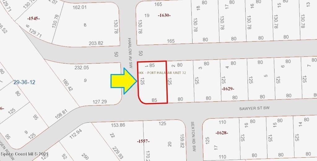 0.24 acre buildable residential lot available in Port Malabar Unit 32 of Palm Bay. Located in the southwest section, this lot has a drainage canal in the rear allowing more privacy, and is just 1.9 miles - 4 minutes to Bayside High School, 3.2 miles - 7 minutes to the Publix Supermarket, 11.8 miles - 27 minutes to Melbourne Airport, and 14.7 miles - 33 minutes to the beaches of Indialantic. From exit #176 of I-95 go west on Palm Bay Road for .7 miles, left on Minton Road for 3.3 miles, right on Jupiter Boulevard for .1 mile, left on DeGroodt Road for 1.0 mile, and right on Sawyer Street. The lot will be on your right at the corner with Harlow Avenue.